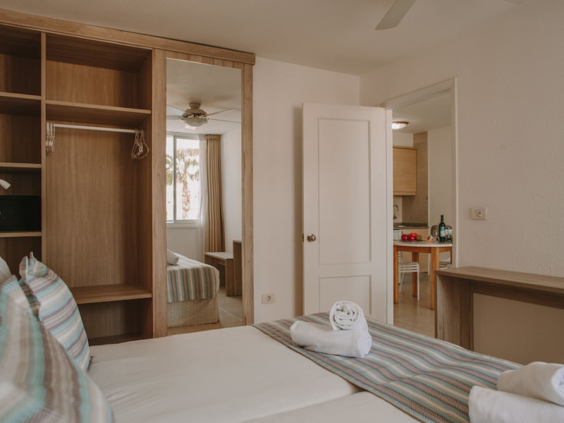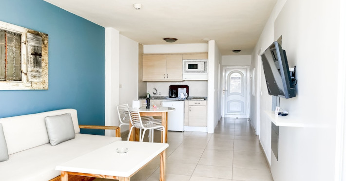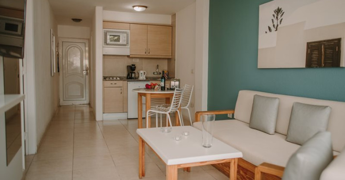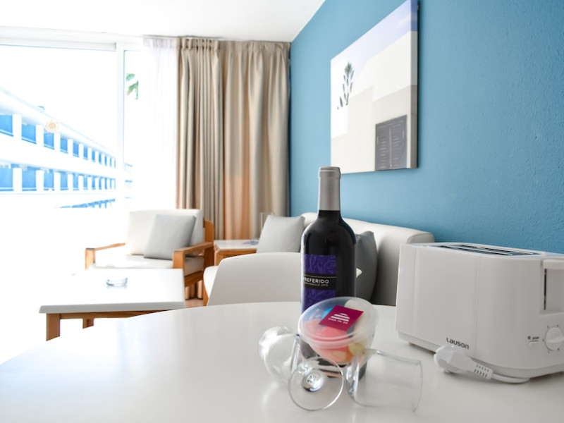 Situated on the main street in Playa del Ingles, 1 km from the beachFacilities and services include reception, outdoor swimming pool, pool bar, sun terrace, internet corner( extra charge) sauna and a small gym(extra charge).Apartments are equipped with bathroom, TV, kitchenette with stove and refrigerator, safe box (extra charge) and balcony There are no telephones in the rooms.** Apartments with 1 bedroom: Sofa Bed for the 3rd/4th person.** Evening entertainment might be disturbing** Complex for adults only. Minimum age to book this hotel is 18 years** A breakages deposit may be collected from the clients. This will be refunded at the end of the stay. APARTMENT 1 BEDROOM - ECONOMY: without cleaning during the stay, cleaning products at the customer's expense. Towels and sheets change: once a week. ***Address: Avda. Tirajana 25 35100 Playa del Ingles, Gran Canaria,Spain
