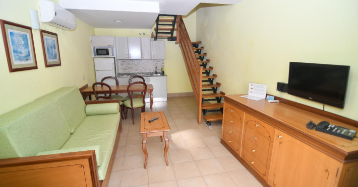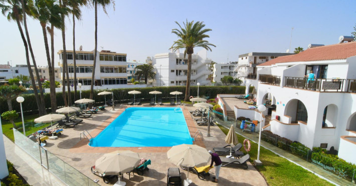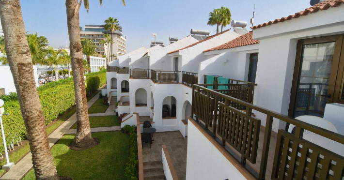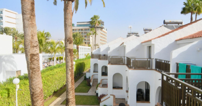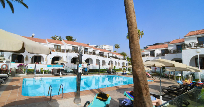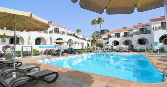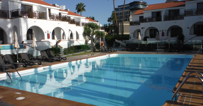 With a Mediterranean style, an atmosphere of stillness, peace and relaxation, this bungalow complex is the ideal place to take a comforting holiday. A few meters from the facilities is the promenade of Playa del Ingles, on the island of Gran Canaria. Thanks to its excellent location, it is possible to enjoy the paradisiacal landscape of the beach, swim in the blue sea of incomparable view or take a long walk through the sand. To cool off, the hotel offers an exclusive pool area for guests, which is built for members of the whole family. The facilities are equipped to make the stay as cozy as possible, and guests feel at home, the rooms have a balcony to enjoy the tropical breeze and the view of the green gardens or the sea. Just 200 meters from the complex there are several restaurants where the family can enjoy gastronomic delights, as well as bars and nightclubs for adults to enjoy the nightlife of the place.