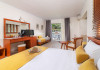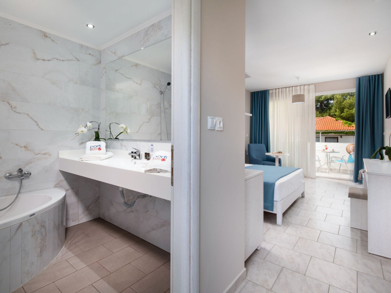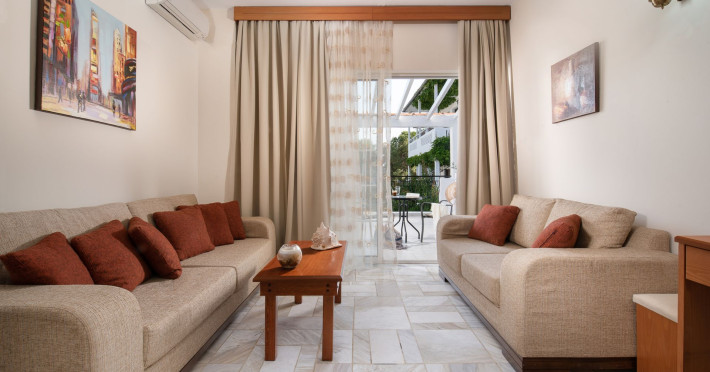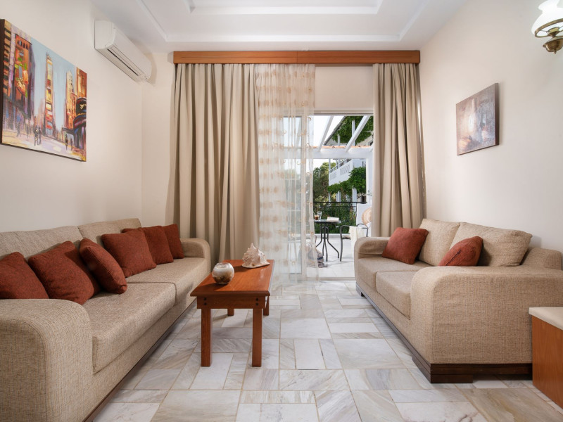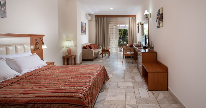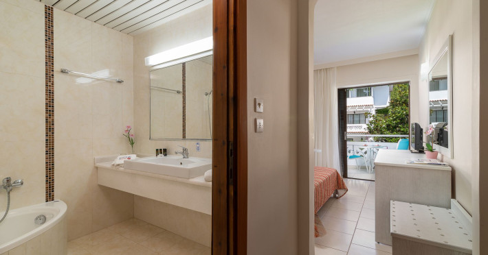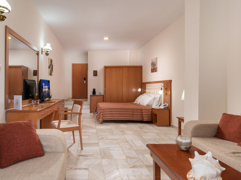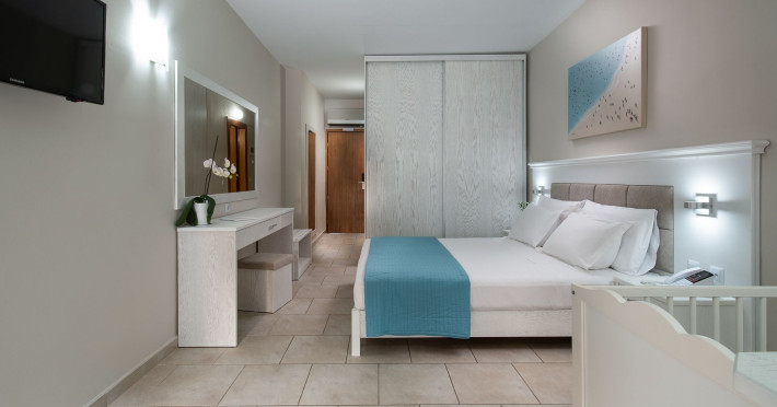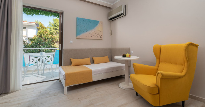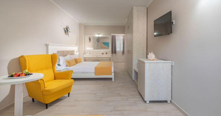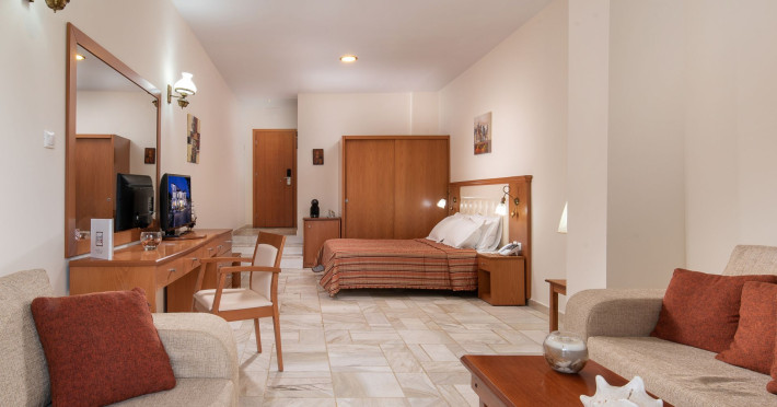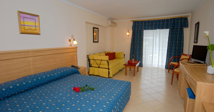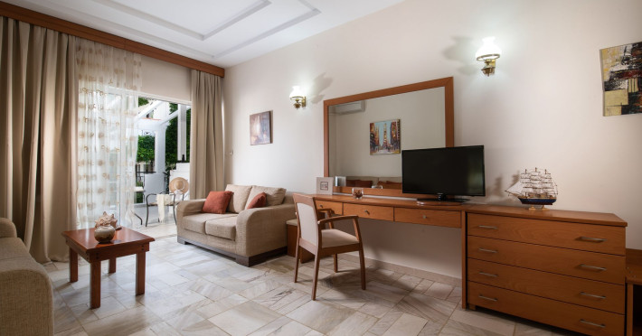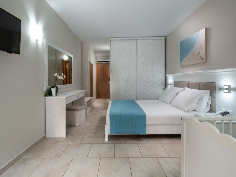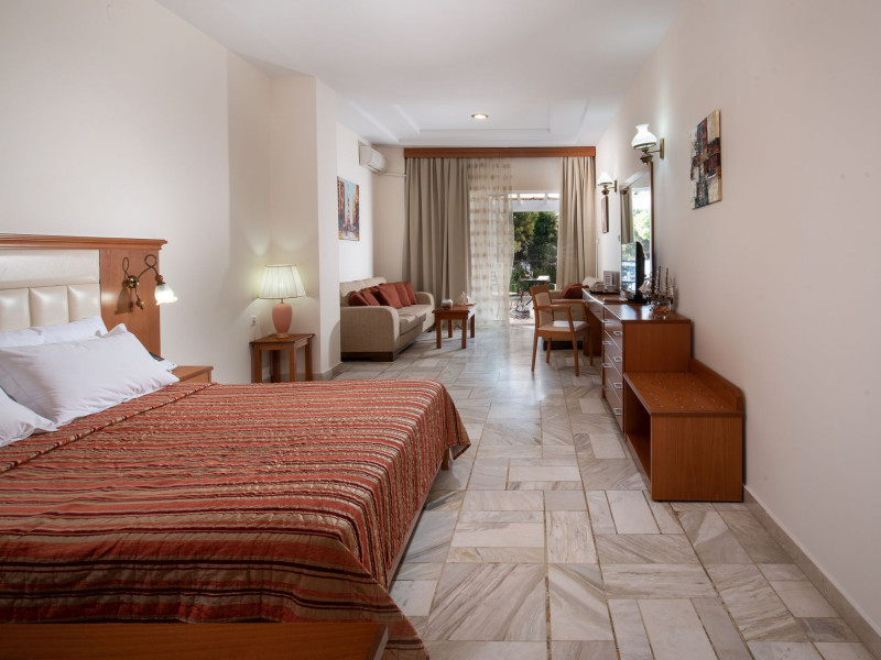 Camerele Hotelului Porfi Beach au aer condiţionat şi balcon sau verandă cu vedere la mare sau la grădinile luxuriante. Toate camerele au zonă de relaxare, iar paturile sunt prevăzute cu saltele anatomice. Acestea includ TV LED cu canale prin satelit şi minibar.