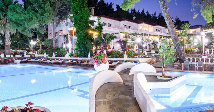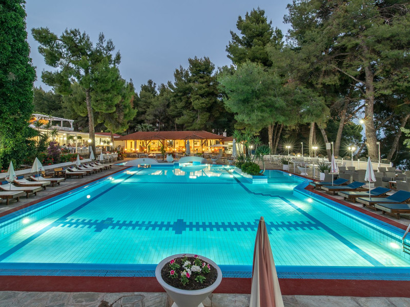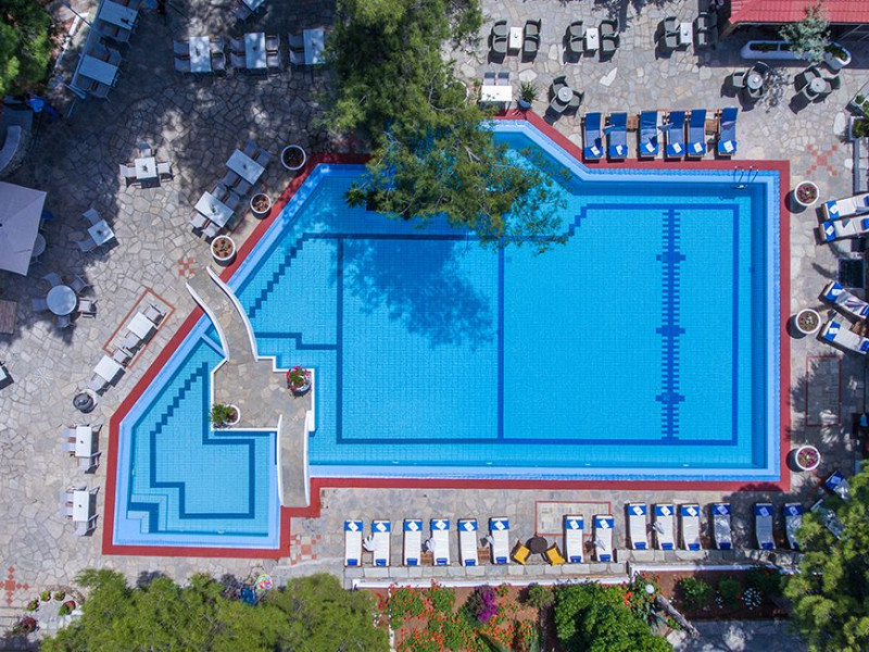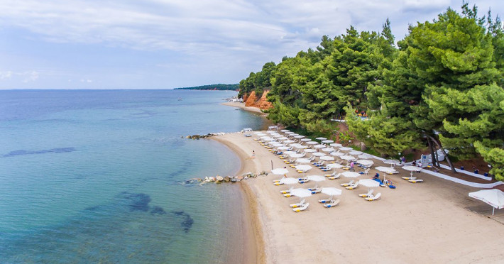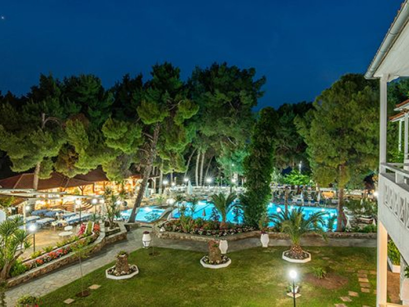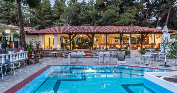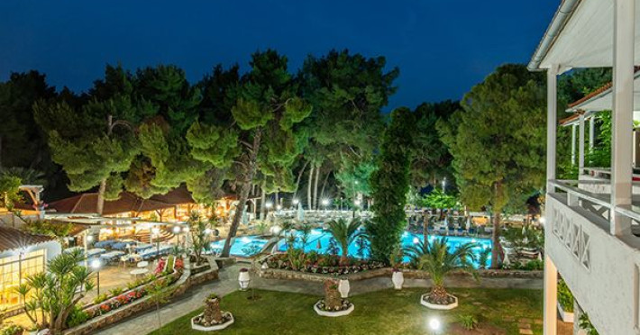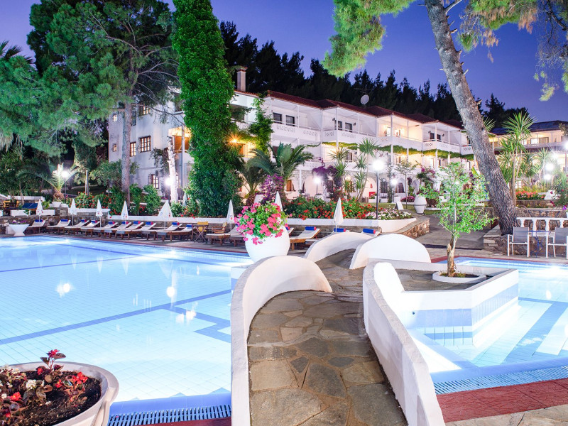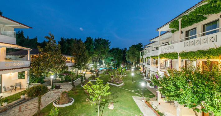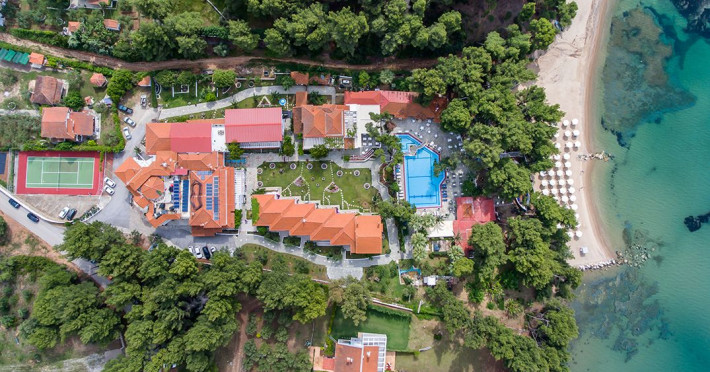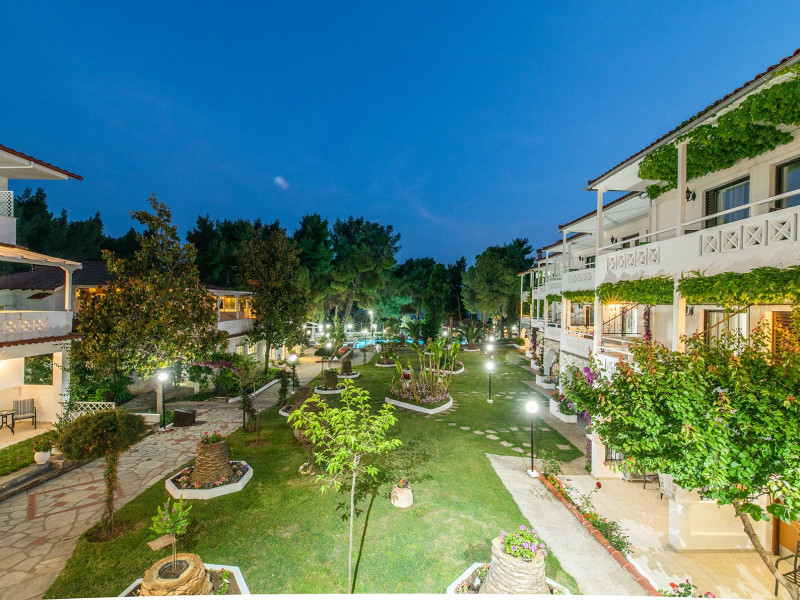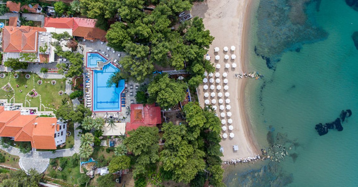 Hotelul este situat la 3km de centrul stațiunii Nikiti, pe brațul Sithonia, chiar lângă plajă. Stațiunea Metamorfosis se află la 2,5km iar Neos Marmaras, la 27 de kilometri.