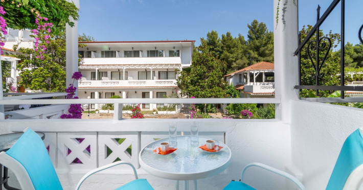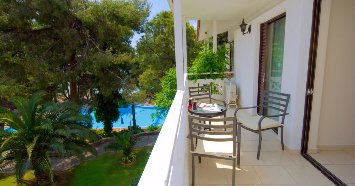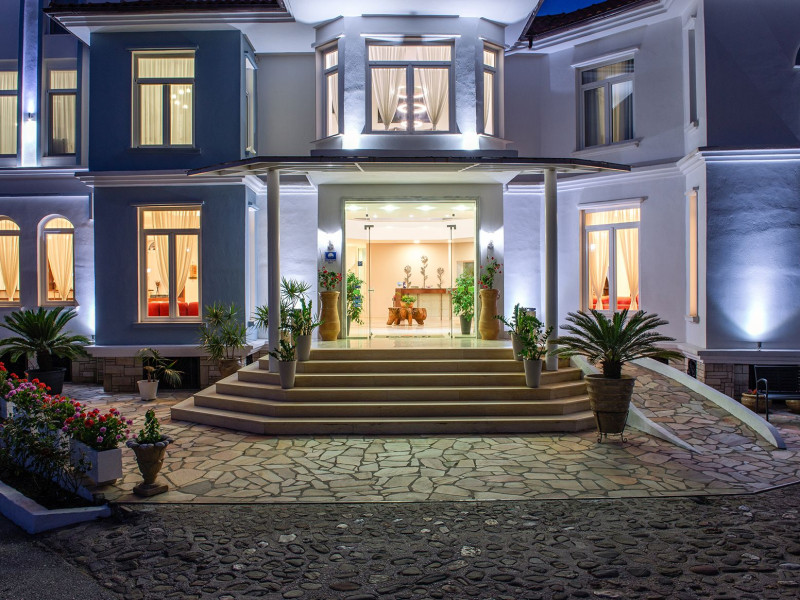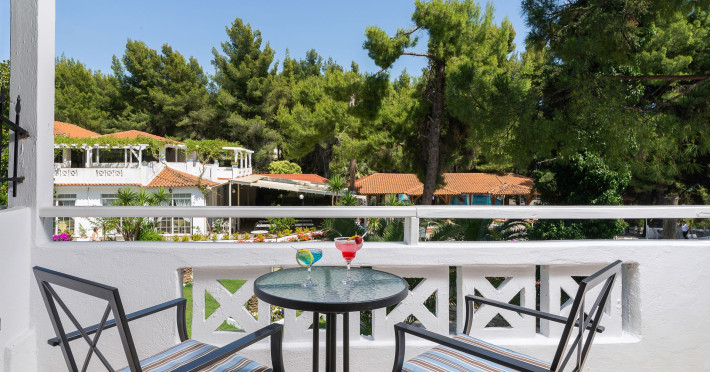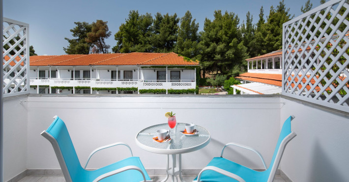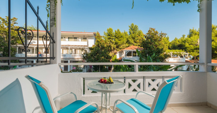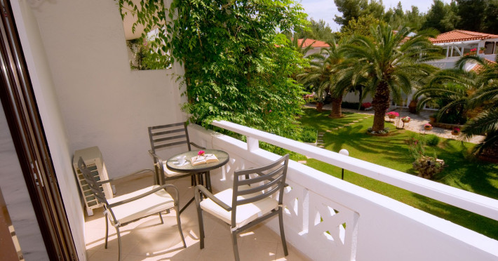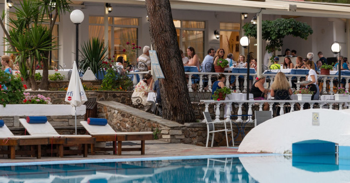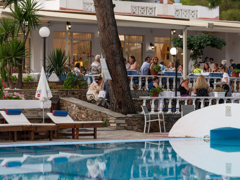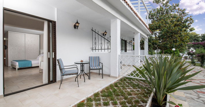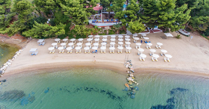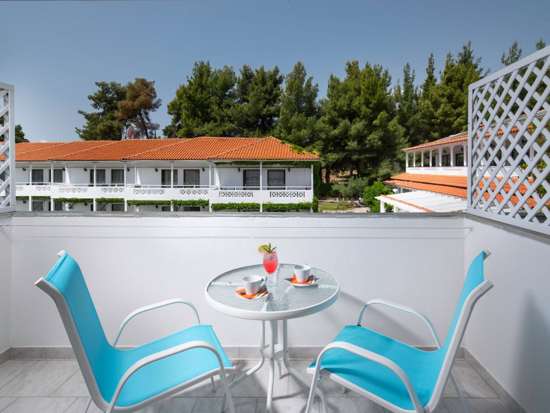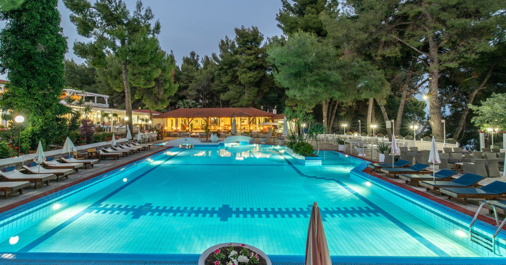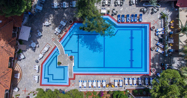 Hotelul este situat la 3km de centrul stațiunii Nikiti, pe brațul Sithonia, chiar lângă plajă. Stațiunea Metamorfosis se află la 2,5km iar Neos Marmaras, la 27 de kilometri.