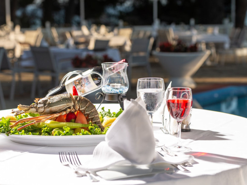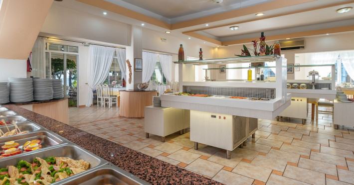 Hotelul dispune de recepție, lobby, restaurant, tavernă, două baruri, piscină cu șezlonguri și umbrele, seif la recepție (cu plată), internet wireless, animație, teren de tenis, loc de joacă, sală de jocuri, parcare, grădină, plajă cu șezlonguri și umbrele. Se pot practica sporturil nautice.