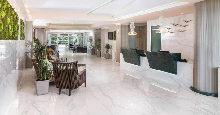 Receptia, sala de conferinte, casa de schimb valutar, cafenea interioara si exterioara, parcare, seif, restaurant central si taverna a-la-carte, piscina pentru adulti si una pentru copii, sauna, sala de gimnastica, facilitati pentru sporturile nautice, teren de tenis, loc de joaca pentru copii, club pentru copii, discoteca, club.