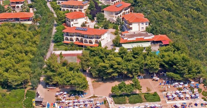 Situat la marginea statiunii Nea Potidea (2 km), fiind accesibil usor din aeroportul international "Makedonia" din Salonic (60 km).