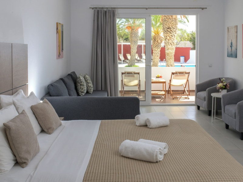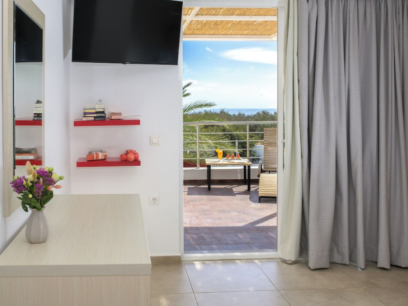 Facilities and services include direct access to sandy beach, Wi-Fi connection, outdoor swimmingpool with sun loungers and umbrellas, 24hr reception, concierge facilities, restaurant, bar, pool and car parking.Rooms feature independently controlled air conditioning, Wi-Fi connection, telephone, flat satellite television, safe deposit box, desk, fridge and hairdryer, balcony or terrace.Check in time: 14:00Check out time: 11:00**Please note that some of the above facilities may be closed due to weather/seasonal conditions**Address: Ferma, 72220 Ierapetra, Crete, Greece.