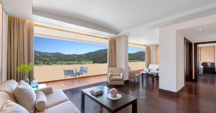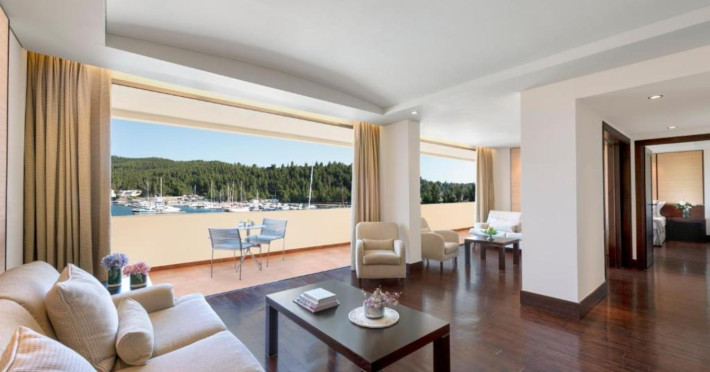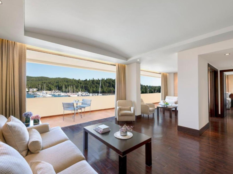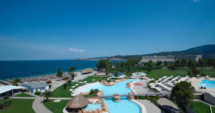 In complete harmony with the pristine natural environment, within 1,763 hectares of natural grandeur in the iconic Porto Carras Grand Resort complex lies its crown jewel, the Porto Carras Meliton 5* Hotel. Superbly located by the cosmopolitan marina, along a 9km long sandy beach with crystal-clear azure blue waters, Melitonâs 324 Deluxe guestrooms can almost touch the horizon with majestic views of the shimmering sea, the bustling marina, or the golf courses, while 155 suites offer the ultimate Suite lifestyle experience of Porto Carras Meliton along with the hotelâs premium services and facilities. The endless beach, including 25 secluded pristine coves, awarded yearly with the Blue Flag certification, offers countless ways to recharge: swimming, snorkeling, scuba diving, water-skiing, canoeing, sailing. But beachside bliss is only the start: enjoy a host of outdoor activities from horse riding to tennis, to basketball, beach volley, football, soccer 5X5, trekking, jogging, cycling, and mountain biking. the With the largest organic vineyard in Greece and one of the biggest in Europe, wine lovers can enjoy a unique experience, taking a walk in the the Domaine Porto Carras vineyards, a picnic in the woods overlooking the Toroneos Gulf, a visit to the Winery, a guided tour of the wine cellars, tasting of aging wines from the barrels. With a wide range of restaurants and bars located all around the complex, Porto Carras Grand Resort ensures an ultimate dining experience characterized by authentic gourmet cuisine, prepared with local, fresh, organically grown produce. Golf enthusiasts become one with nature on the 18-hole course, where strategic water obstructers and the bunkers provide tension in every stroke while offering superb views. To revitalize visit the 4,700 sqm world-class Spa Center, offering a wide range of treatments., and fitness centers. For the perfect end to a sun-filled day, relax with an expertly made cocktail and the sound of live music at one of the 5 bars across the resort or opt for exciting gaming moments, at the Porto Carras Casino Meliton Privé offering an exceptional playing environment, all-year-round.