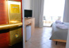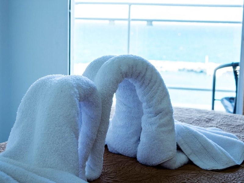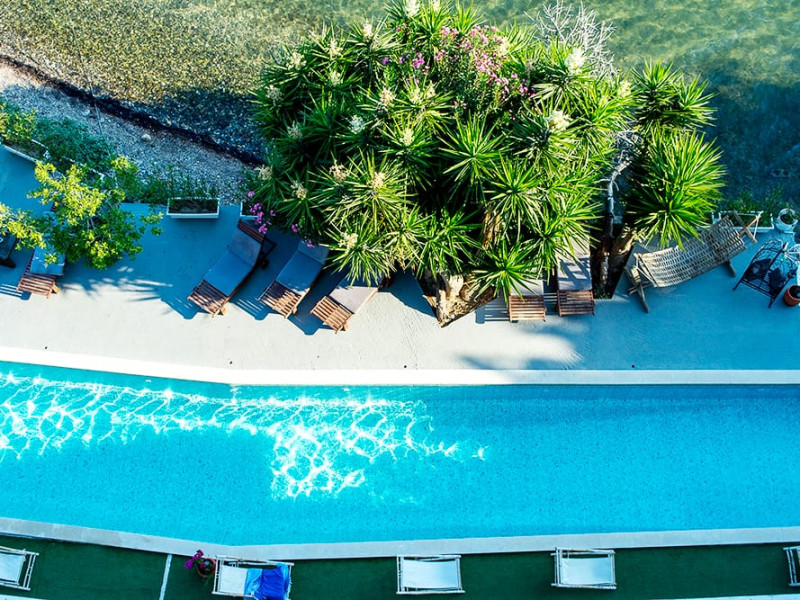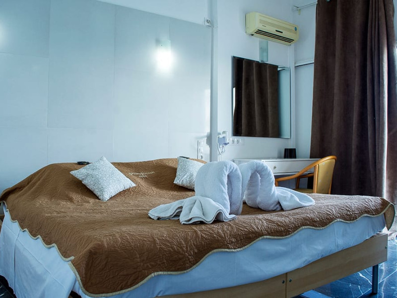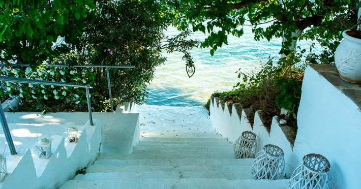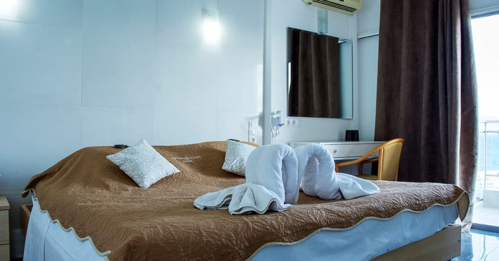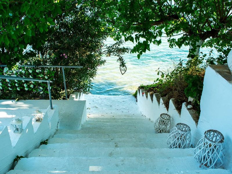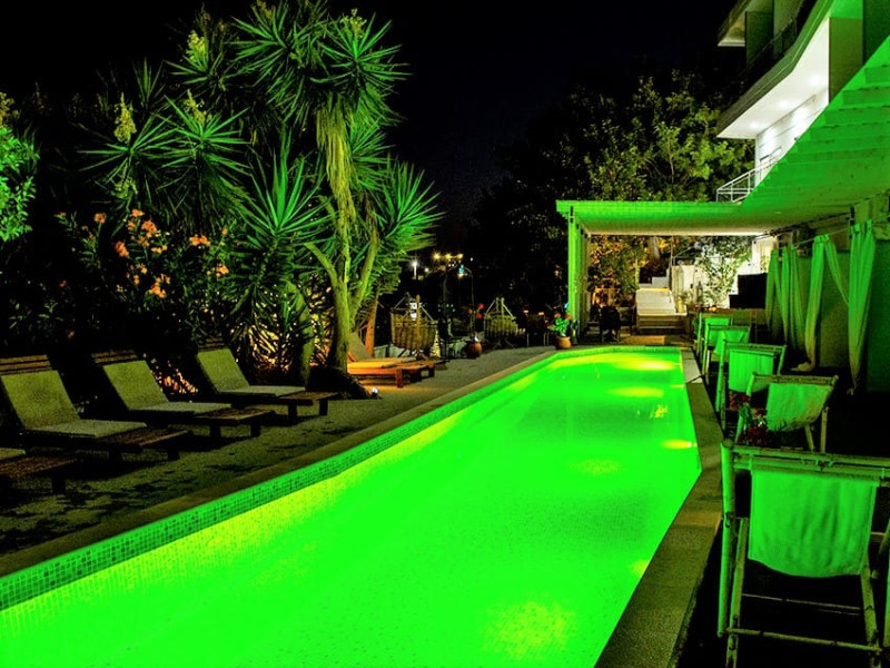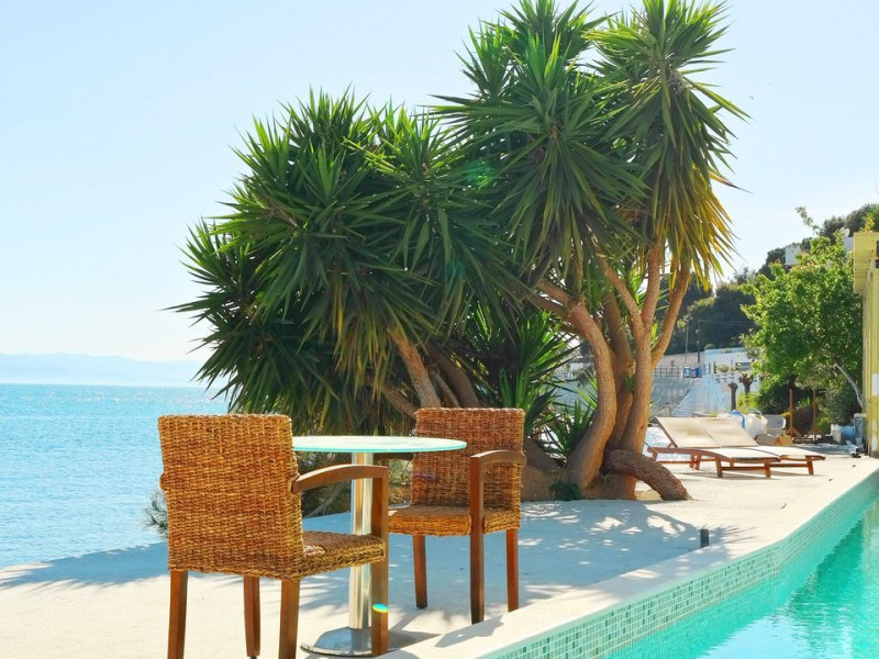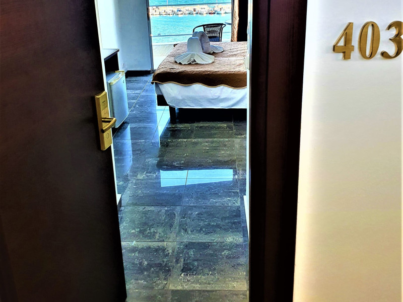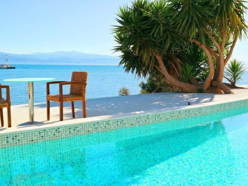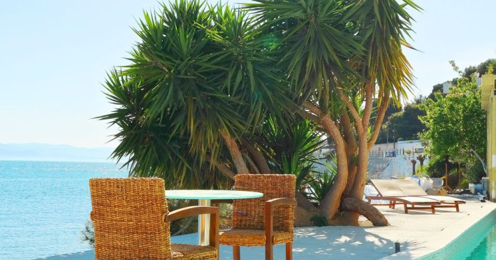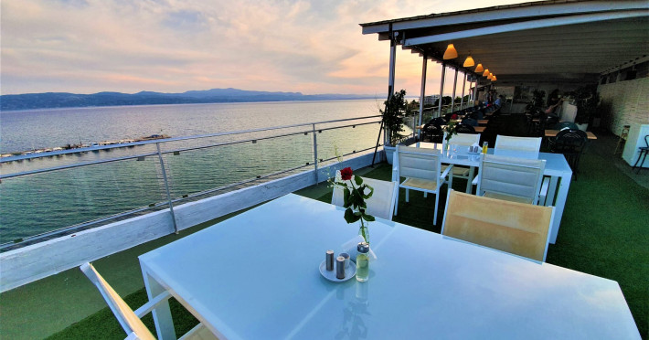 The Porto Evia Boutique Hotel is located in the center of the Ancient city of Amarynthos aged over 8000 years ago with findings since 6000 B.C. The hotel is a seafront property located directly right in front of the sea of Evoikos Gulf, with direct access to the water from the hotel terrace, the only hotel located in the sea within 7 meters from the main building. The hotel consists of 43 units, of which 8 are seafront beach level studios, 3 Sea view-marina-city view suites consisting of 3 rooms each with double balconies, and 32 rooms, sea view rooms with direct sea view and marina view. The entire hotel is overlooking the Marina, the Evoikos Sea Gulf, and the cities of Attica. The hotel is located in the center of Amarynthos town of Eretria borough, which is a the most lively city of South Evia island, offering a wide range of bars, clubs, restaurants, beach bars, and the entire town of Amarynthos is located across the coastline, right in front of the sea. All these facilities are accessible from the Porto Evia boutique Hotel, within 2 minutes walk, although the hotel is very quite during all times. The Hotel offers a seafront bar and restaurant offering services 24 hours a day. The roof garden has a unique view across the ocean with nice towns, small islands and marinas right in front of the hotel.All room offer a fantastic sea view balcony, fully equipped shower bathroom, toiletries, mini fridge, air-conditioning, hairdryer, TV, room service. Other beaches except of the hotel seafront area, there is a nice beach 1 minute walk from the hotel and also beach bars and other beaches within 10 minutes walk from the hotel.