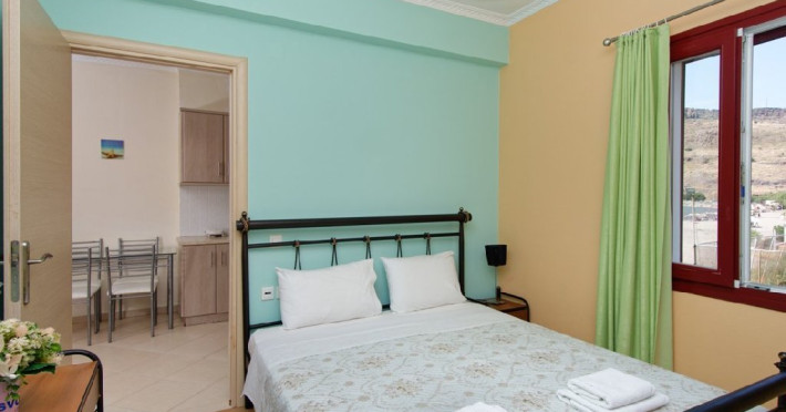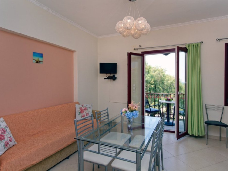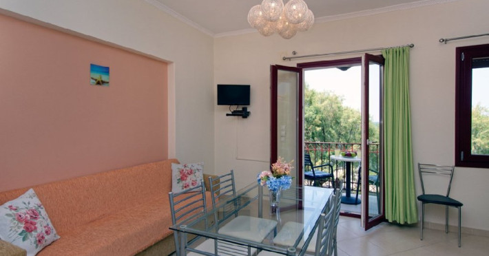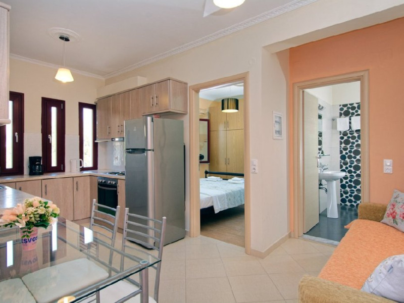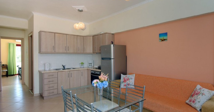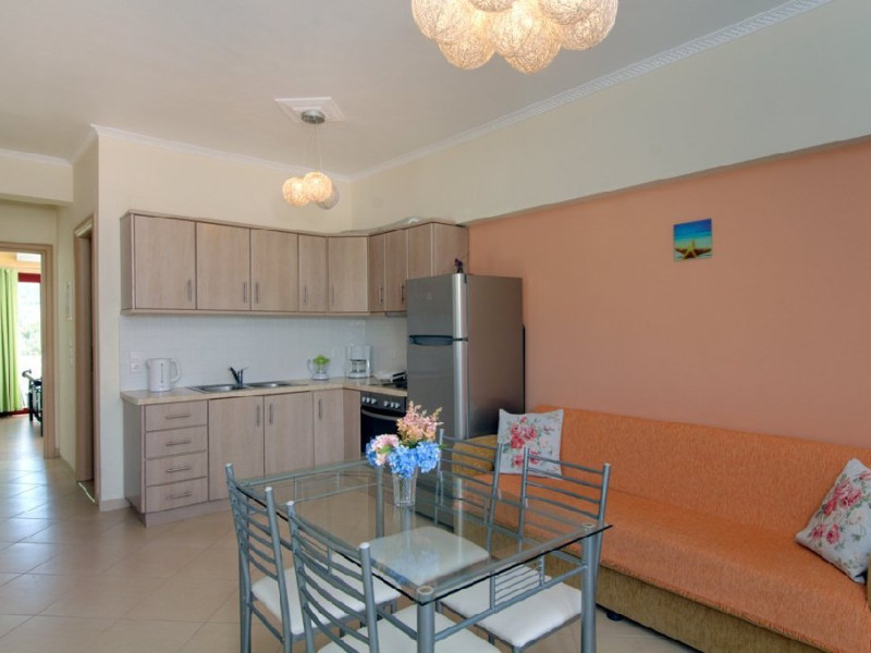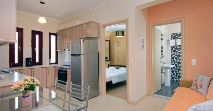 Baia este privata, iar apartamentele sunt dotate cu aer conditionat (de regula contra cost), televiziune i spatii de depozitare. Balconul sau terasa ofera vedere directa spre mare sau spre sat. In apartamentele cu doua camere, livingul include canapea extensibila, ceea ce face unitatea potrivita pentru 3-4 persoane.