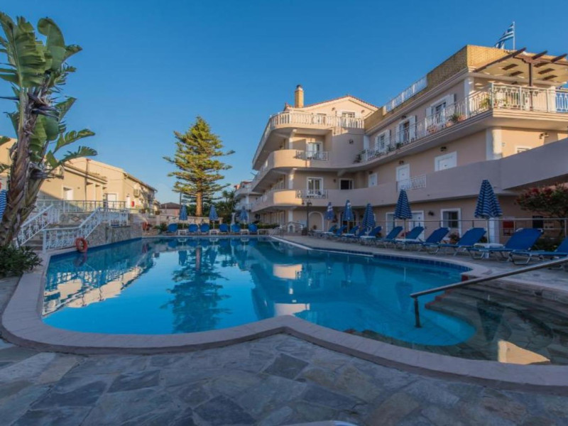 Location: Centrally located in Tsilivi, this hotel is near the beach. Facilities: The friendly staff at the reception desk are happy to answer any questions. The hotel provides a baggage storage service, a safe, a TV room, a babysitting service, room service, a hotel doctor and a roof terrace. Wireless internet access (no extra charge) allows guests to stay connected while on holiday. The hotel has wheelchair-accessible facilities and a lift. Everyday necessities can be purchased at the supermarket. The grounds of the hotel feature a playground and a lovely garden. Guests arriving by car can park their vehicles in the car park for no extra charge. Services include a hotel shuttle bus. Rooms: Air conditioning and central heating ensure that rooms maintain comfortable temperatures. A balcony is among the standard amenities of some rooms. The rooms have a double bed and a sofa bed. Children's beds can be requested for younger guests. Valuables can be securely stored in a safe. Additional features include a refrigerator and a tea/coffee station. Internet access, a telephone and satellite television provide all the essentials for a comfortable holiday. Bathrooms are equipped with a shower and a hairdryer. Guests can also book wheelchair-friendly rooms with wheelchair-accessible bathrooms. Family rooms are available for parents with children. Sports/Entertainment: Featuring 2 outdoor pools and children's swimming area, the pool complex is ideal for working out or just relaxing. A short break or an entire afternoon on the sun terrace, which features sun loungers and parasols, is time well spent. There is a poolside snack bar as well. There are many ways to relax or stay active at the hotel, including tennis, horse riding, diving, billiards and massage treatments. Children are well looked after in the kids' club. Copyright GIATA 2004 - 2025. Multilingual, powered by www.giata.com for client no. 125352 Meals: Various dining options are available, including a restaurant, a café and a bar. Half board is offered as a catering option. It is also possible to order breakfast. Staff are also happy to provide gluten-free meals. The show cooking is a particularly special attraction. Payment: The hotel accepts payment by VISA.