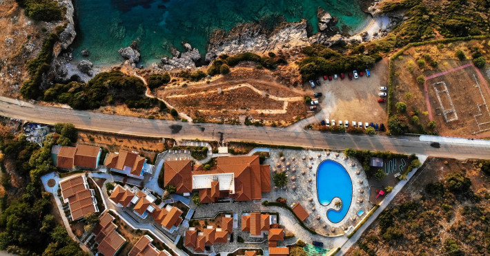 Porto Skala Hotel - Village is a spacious complex set in attractive gardens and quiet surroundings. It is perfectly placed in an amphitheatric shape and enjoys marvellous views to the Ionian Sea.The architecture is this of a traditional Greek village and all rooms and public lounges are bright, comfortable, with sea views or side sea view and along with the attentive staff create a friendly and relaxing atmosphere.Just 10m from the hotel are steps leading to a secluded quit and unspoiled natural pebble beach with crystal sea waters ideal for swimming and snorkelling.Hotels’ Restaurant operates rich buffet and offers magnificent recipes and flavours inspired from Greek traditional Cuisine.