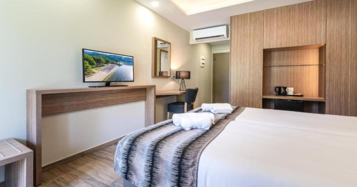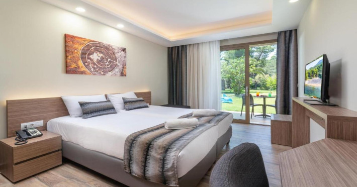 Toate camerele de la Poseidon Resort Hotel sunt decorate modern și au vedere la piscină sau la grădină. Se oferă WiFi gratuit.
