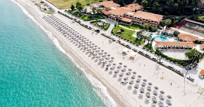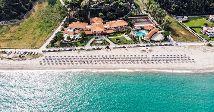 Hotelul este situat in Possidi, pe plaja privata cu nisip, in apropiere de Sanctuarul lui Poseidon si de farul din Possidi.