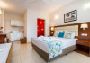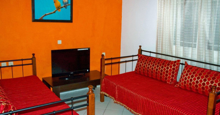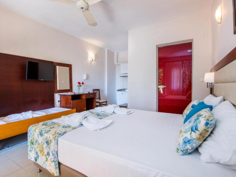 Air conditioning and central heating ensure that rooms maintain comfortable temperatures. Guests can enjoy the garden view from a balcony or terrace. Rooms have a double bed, a queen-size bed or a sofa bed. Extra beds can be requested. Amenities include a refrigerator, a TV, a safe and WiFi (no extra charge). Bathrooms are equipped with a shower and a hairdryer. The hotel has family rooms and non-smoking rooms.