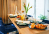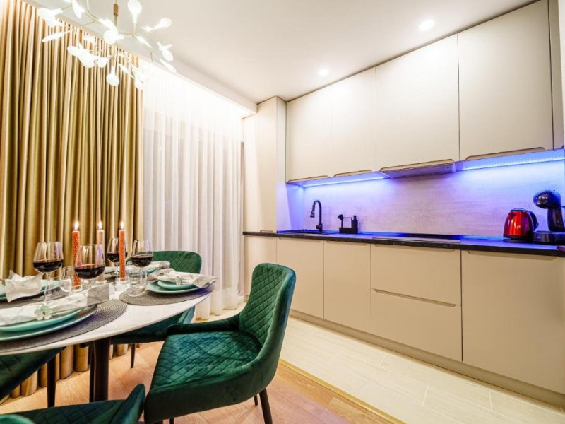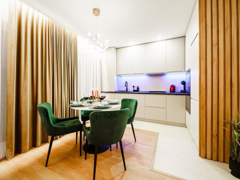 Bucatariamoderna este dotata cu toate facilitatile necesare pentru a-ti oferiindependenta si confortul de acasa: masina de spalat vase, frigider cucongelator, cuptor clasic si cuptor cu microunde, aparat de cafea, fierbator deapa si toate accesoriile indispensabile.