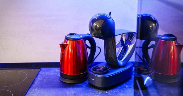 Chicinetacomplet utilata dispune de frigider, plita electrica, cuptor cu microunde,fierbator de apa, aparat de cafea si toate ustensilele necesare pentru un micdejun savurat in tihna sau o cina rapida pregatita in intimitatea proprieicamere.