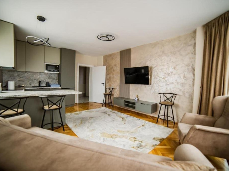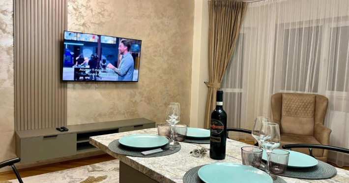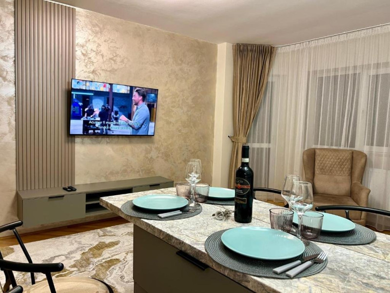 Livingulgeneros te intampina cu o atmosfera calda si prietenoasa, dotat cu semineuelectric, canapea confortabila, masa de cafea, TV LCD si o zona open-spacepentru servirea mesei.