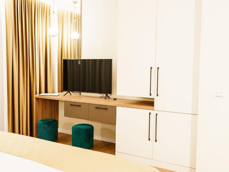 Dormitoruleste o adevarata oaza de odihna si stil: pat king-size extrem de confortabil,TV LCD, birou, masa de machiaj, dulap generos si un fotoliu tip sezlong idealpentru momentele de relaxare.
