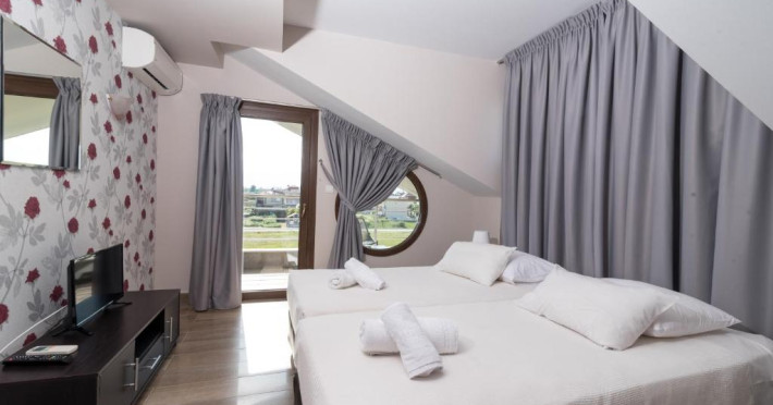 Toate camerele hotelului Principal se bucură de vedere la piscină, la golful Thermaic sau la munte. Unitătile de cazare au mobilier modern si tapet floral, precum si frigider, TV cu ecran plat si seif. Baia privată include uscător de păr si articole de toaletă gratuite.