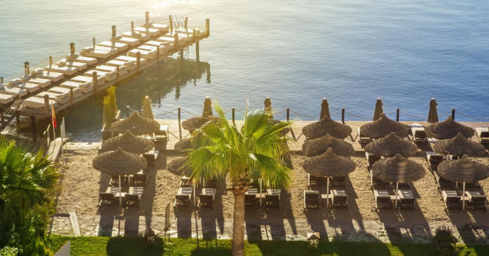 Situat la doar 900 de metri de centrul oraşului Bodrum. Aeroportul Milas-Bodrum este la 40 km.