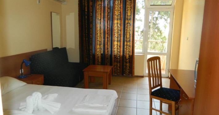 Hotel Privileg este situat in Sunny Beach, la 200 de metri de plaja si langa padurea de pini. Centrul Sunny Beach si Action Aqua Park sunt la 2,5 km, Cacao Beach este la 5 km, iar Aeroportul Burgas este la 28 km. Plaja: cu nisip, la 200 de metri de hotel. Fundul marii este plat, cu acces lin. Cazare: Hotelul are un total de 20 de camere duble. Toate paturile suplimentare sunt fotolii extensibile. DOUBLE ROOM 2+1/2+2: Suprafata aproximativa de 24 mp. Camerele au doua paturi de o persoana, fotolii extensibile, seif, cablu TV, zona de relaxare, baie cu dus. Cele mai multe camere au vedere partiala la mare, iar toate camerele au vedere la gradina. Capacitate maxima pentru 2 adulti si 2 copii sau 3 adulti. Patutul de copii este oferit gratuit la cerere prealabila. Animalele de companie nu sunt permise in hotel. Nu exista facilitati adecvate pentru cazarea persoanelor cu dizabilitati. Despre hotel: Un bar de zi, o gradina, piscina sezoniera in aer liber gratuita cu sezlonguri, acces la internet Wi-Fi in intregul hotel, parcare privata, servicii de spalatorie, calcatorie, camera de bagaje.