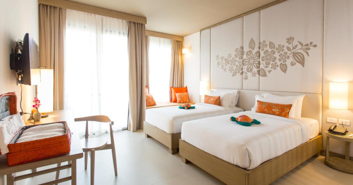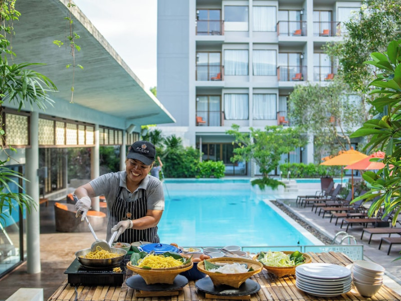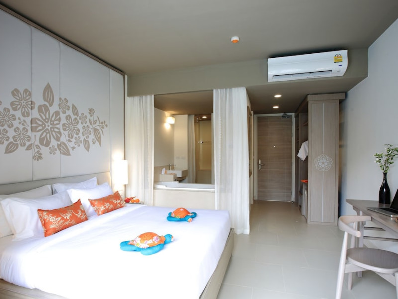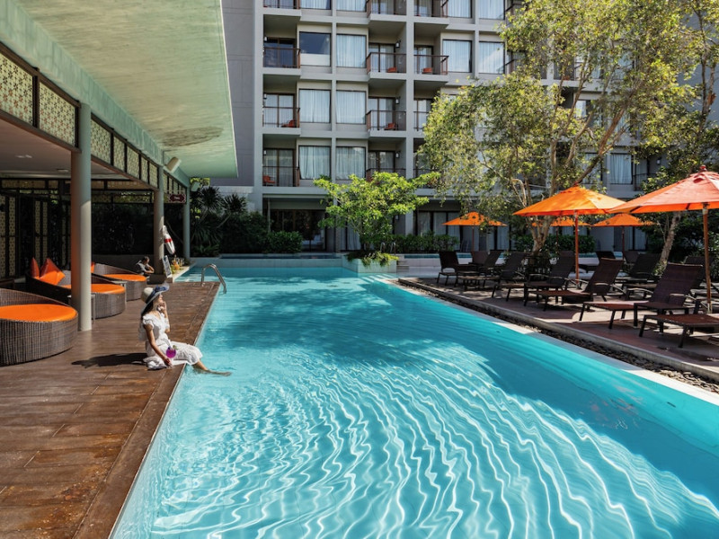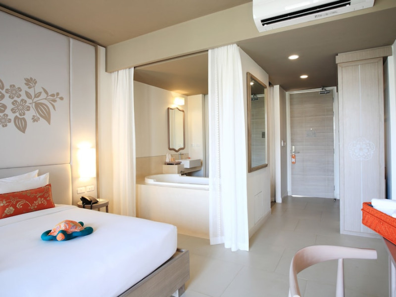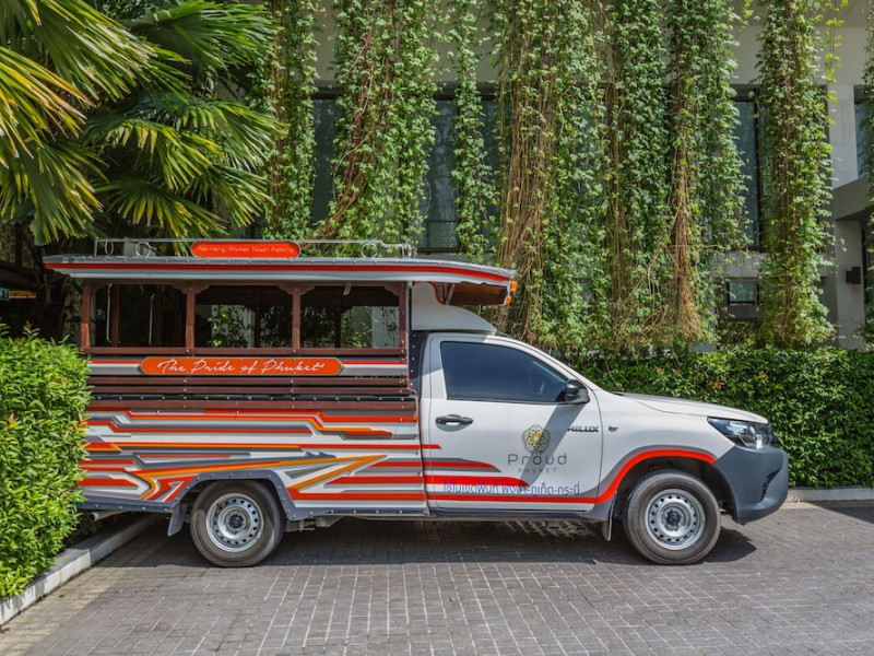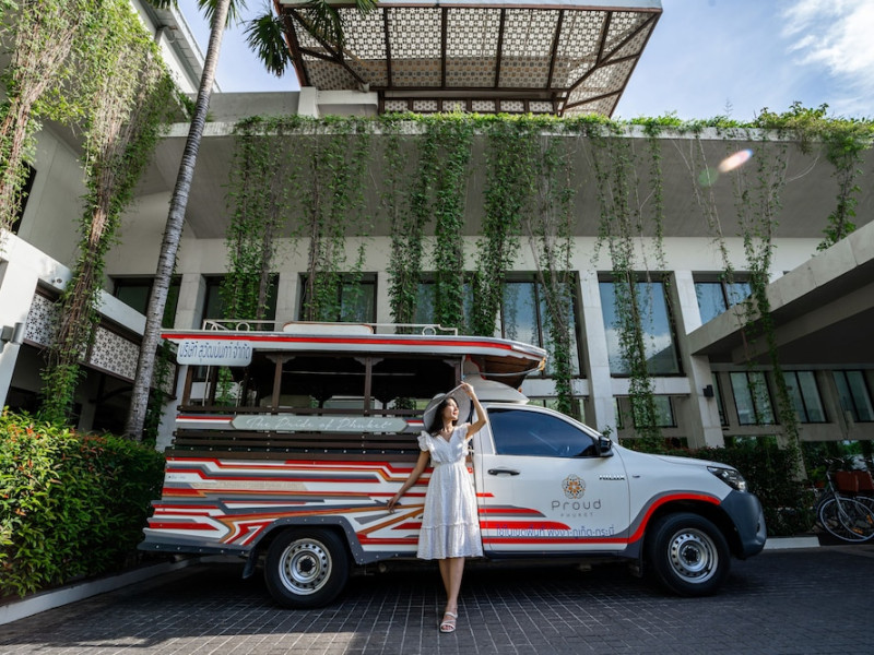 Located in the Naiyang area of Phuket, near Nai Yang Beach and Sirinat National Park, Proud Phuket blends traditional Phuket architecture with a modern design. The hotel offers air-conditioned rooms with a balcony or patio, flat-screen cable TV, a private bathroom with a separate bathtub and shower, complimentary toiletries, and free Wi-Fi. Guests can enjoy an outdoor pool, fitness center, and on-site dining at the restaurant, coffee shop/cafe, and poolside bar. Services include a 24-hour front desk, daily housekeeping, room service (limited hours), airport shuttle (surcharge), laundry/dry cleaning, luggage storage, and a tour desk. Free parking is available. The Proud Phuket Hotel is a hotel.