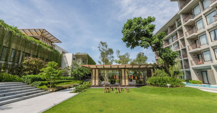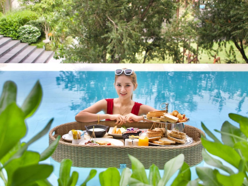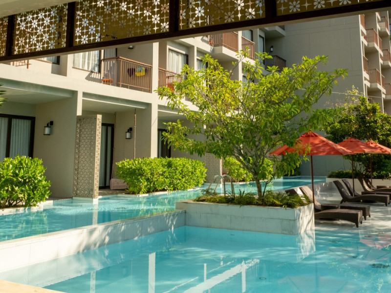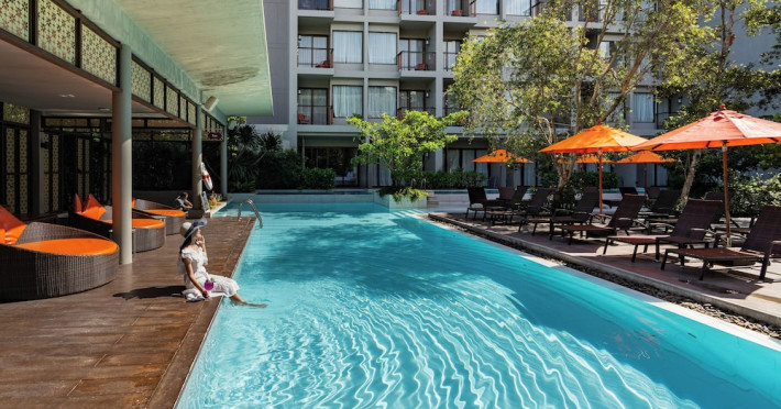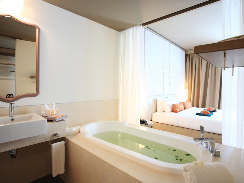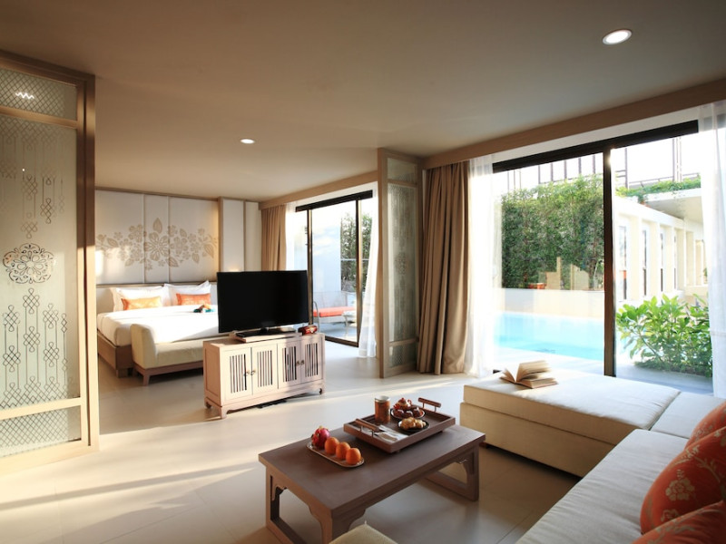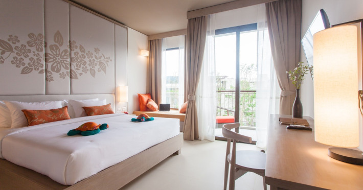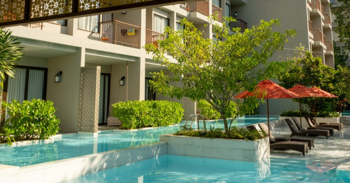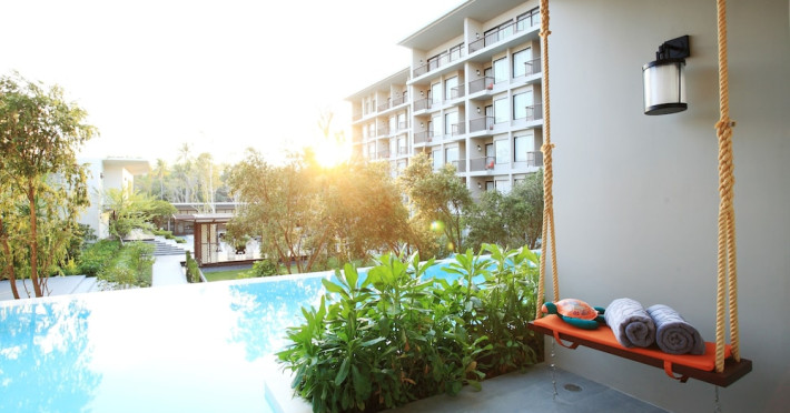 Located in the Naiyang area of Phuket, near Nai Yang Beach and Sirinat National Park, Proud Phuket blends traditional Phuket architecture with a modern design. The hotel offers air-conditioned rooms with a balcony or patio, flat-screen cable TV, a private bathroom with a separate bathtub and shower, complimentary toiletries, and free Wi-Fi. Guests can enjoy an outdoor pool, fitness center, and on-site dining at the restaurant, coffee shop/cafe, and poolside bar. Services include a 24-hour front desk, daily housekeeping, room service (limited hours), airport shuttle (surcharge), laundry/dry cleaning, luggage storage, and a tour desk. Free parking is available. The Proud Phuket Hotel is a hotel.