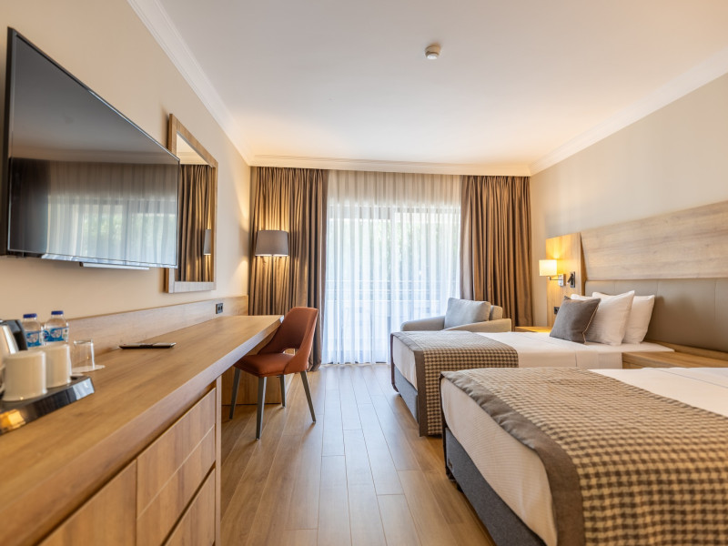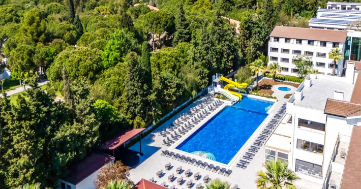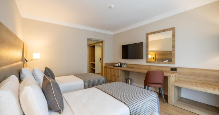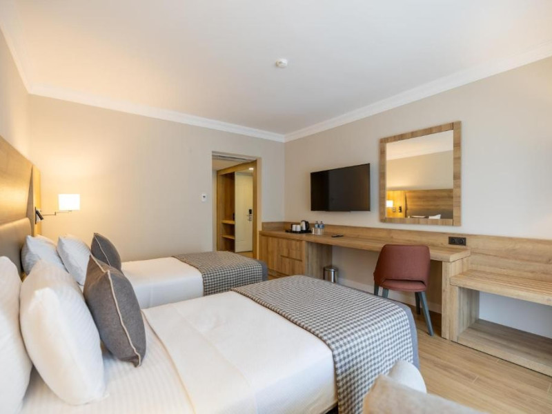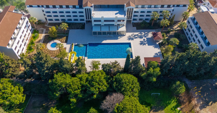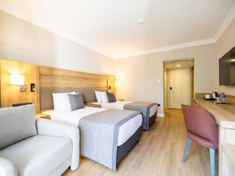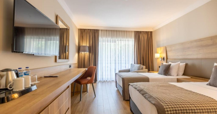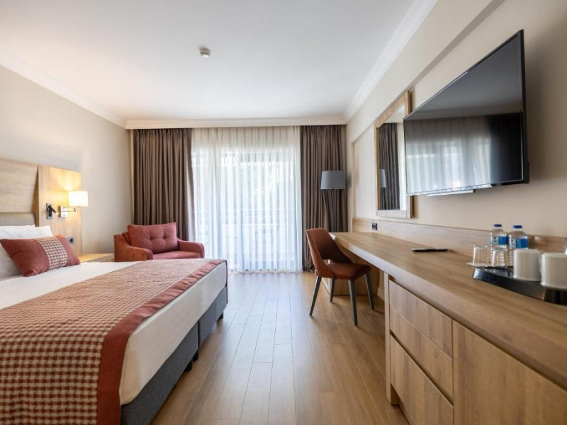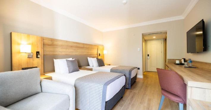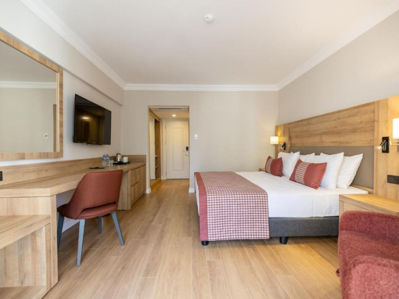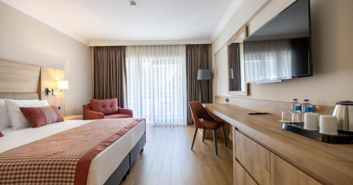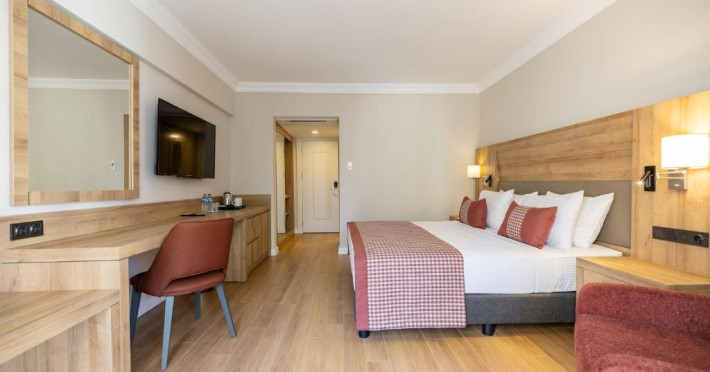 Un hotel modern si elegant, este situat in populara statiune Kusadasi, langa frumoasa plaja cu nisip Pigale Beach. Hotelul este inconjurat de natura si ofera cazare in camere elegante si confortabile. Turistii au acces la 2 piscine, tobogane si o piscina pentru copii. Centrul orasului Kusadasi este la aproximativ 5 km distanta, iar orasul antic Efes este la 12 km distanta.