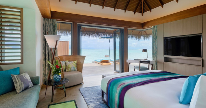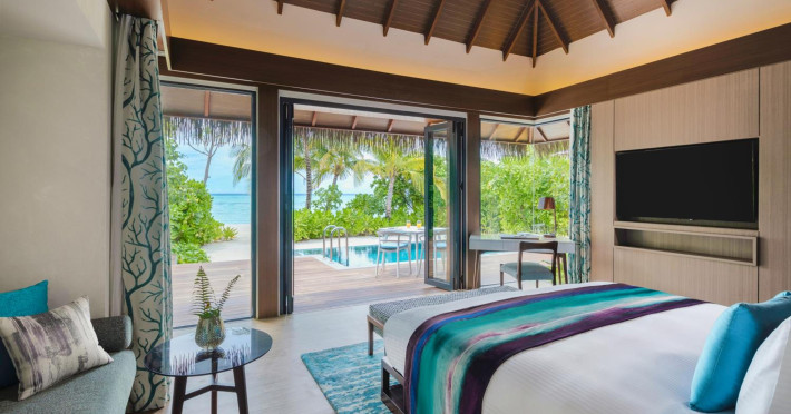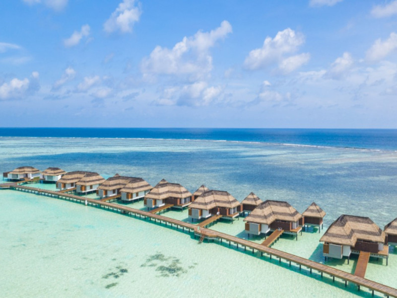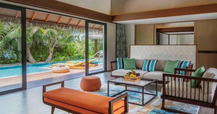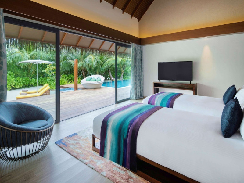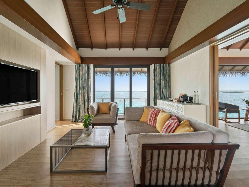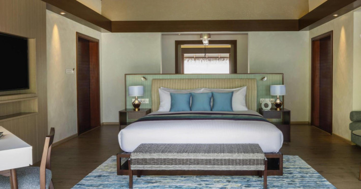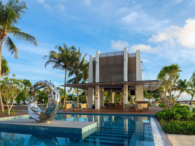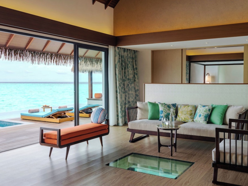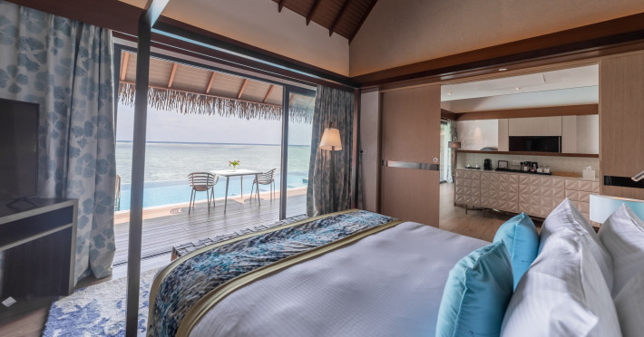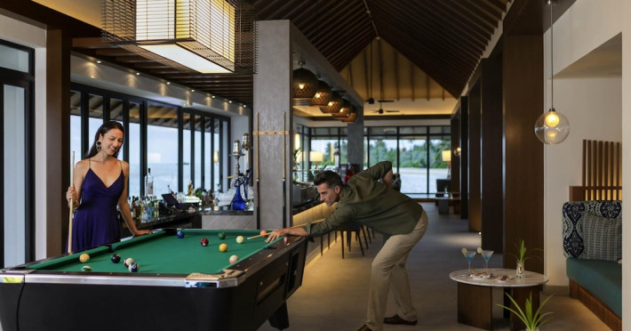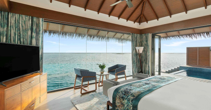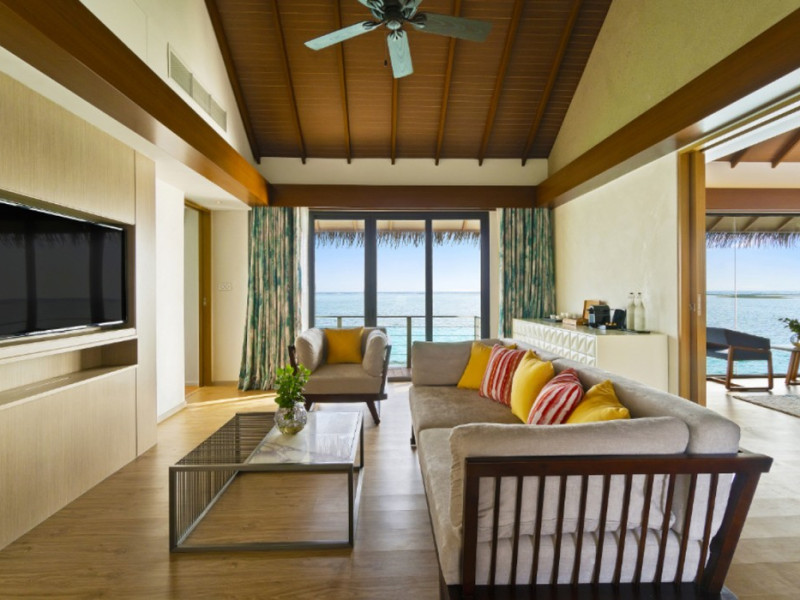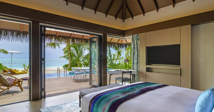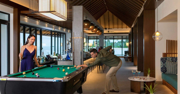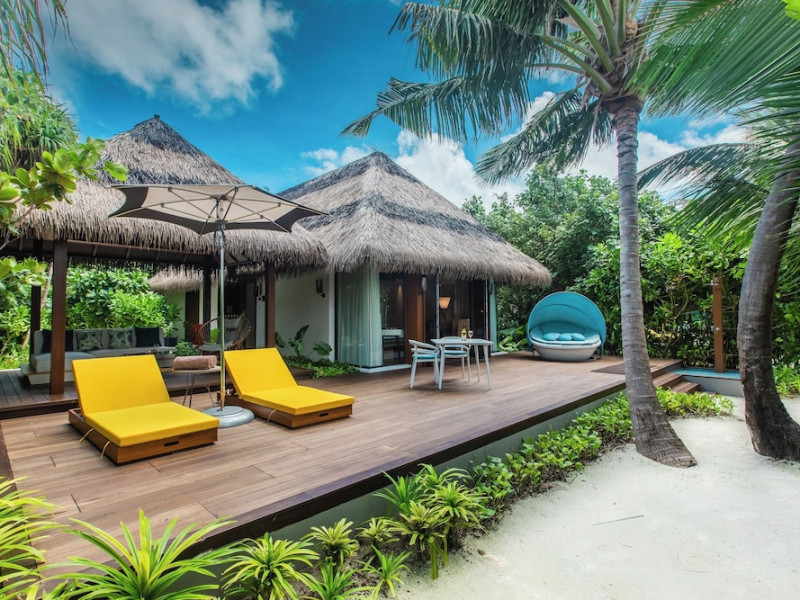 Escape to the Pullman Maldives Maamutaa, an all-inclusive five-star resort nestled on Maamutaa Island in the Gaafu Alifu atoll. This 18-hectare haven boasts 122 villas, each featuring a private furnished patio, indoor and outdoor showers, a 55-inch HD TV, Nespresso machine, USB port chargers, and a minibar replenished twice daily. Enjoy unlimited meals at three restaurants (including vegetarian options at Phat Chameleon and fine Italian dining at Souq Oven) and three bars, plus access to two poolside bars. The all-inclusive package also includes free non-motorized water activities. Amenities include three outdoor swimming pools, a private beach, a spa offering massages, body treatments, and facials, a fitness center, a business center, 24-hour room service, a 24-hour front desk, laundry facilities, complimentary Wi-Fi, and babysitting services (surcharge). The resort is near Hadahaa Beach and Kooddoo (GKK) airport. A range of activities are available, including diving, water sports, karaoke, golf, tennis, and beach volleyball. The Pullman Maldives Maamutaa is a hotel.