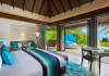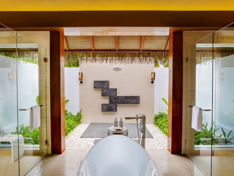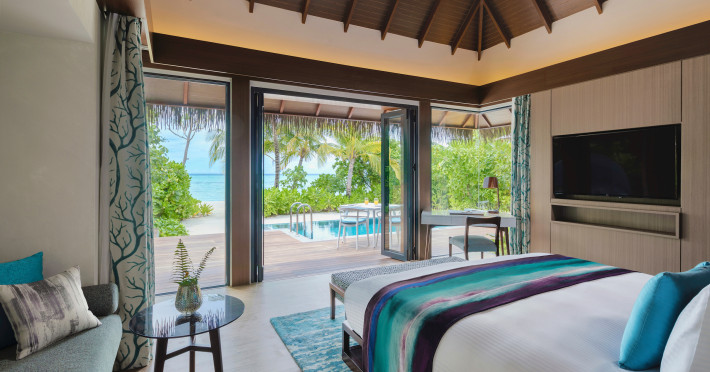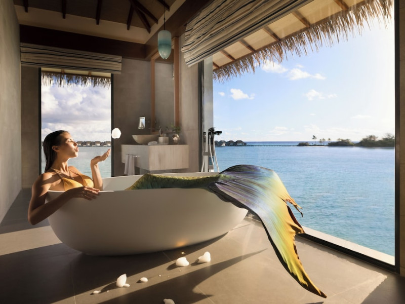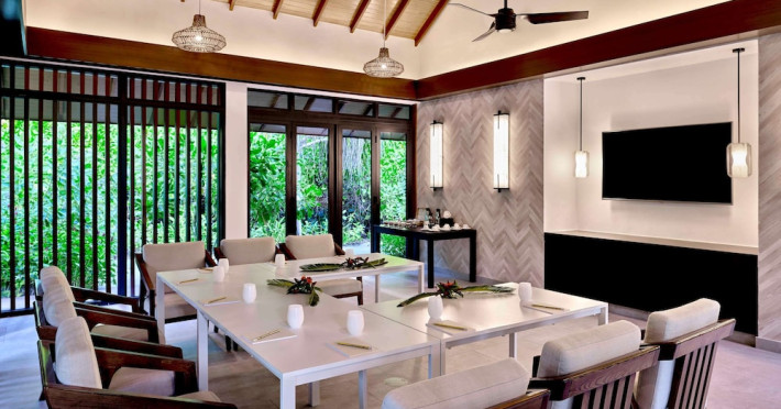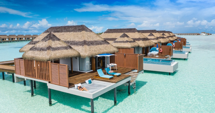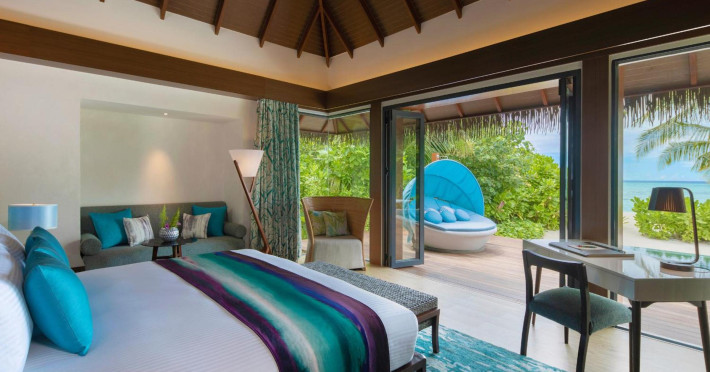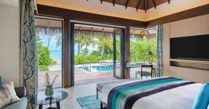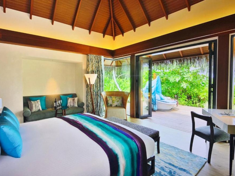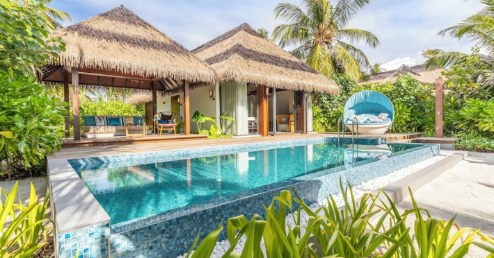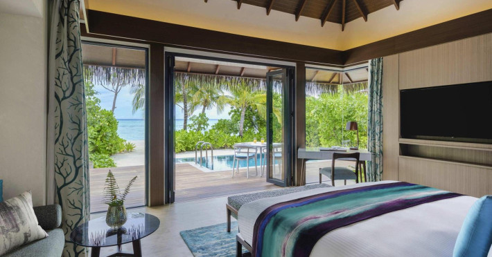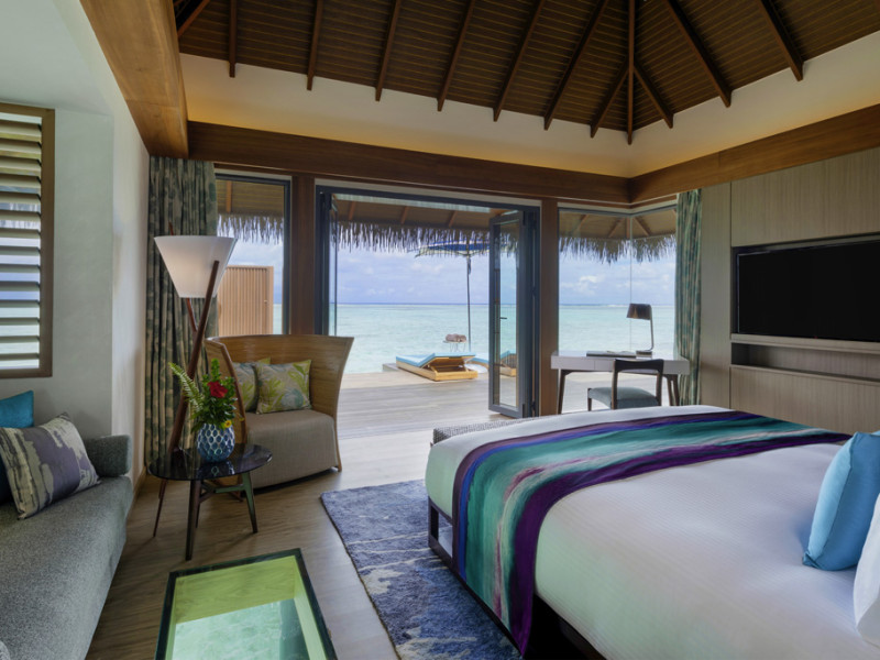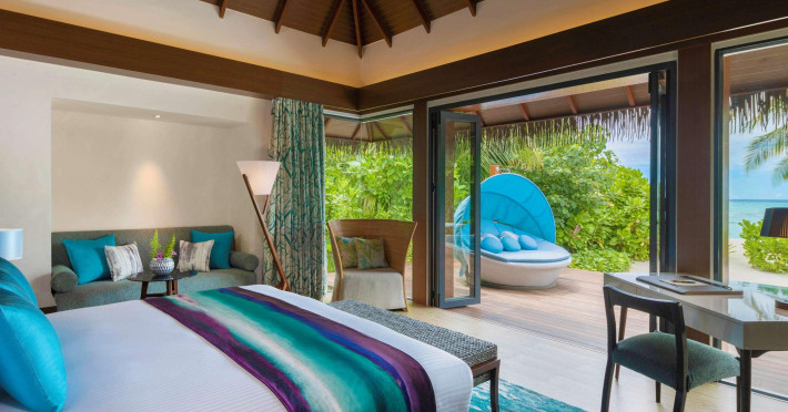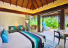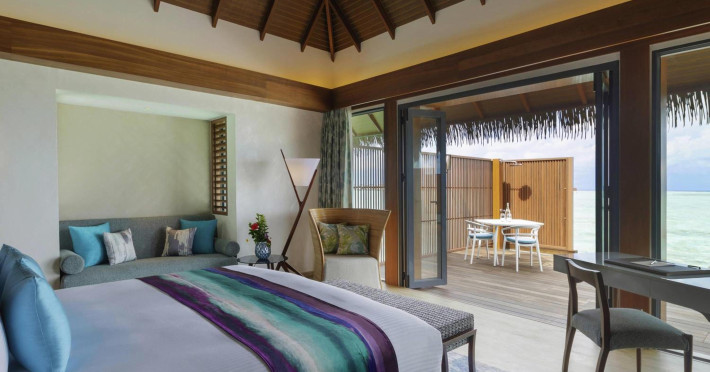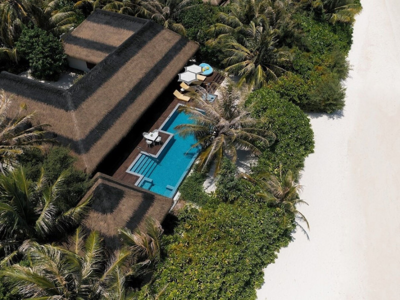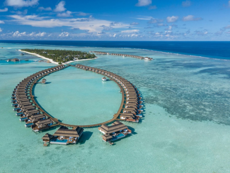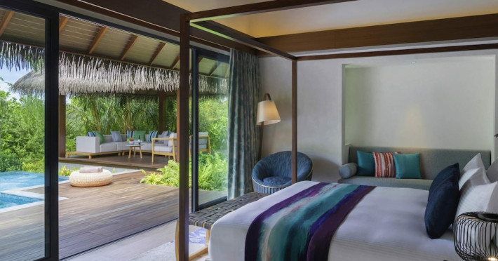 Escape to the Pullman Maldives Maamutaa, an all-inclusive five-star resort nestled on Maamutaa Island in the Gaafu Alifu atoll. This 18-hectare haven boasts 122 villas, each featuring a private furnished patio, indoor and outdoor showers, a 55-inch HD TV, Nespresso machine, USB port chargers, and a minibar replenished twice daily. Enjoy unlimited meals at three restaurants (including vegetarian options at Phat Chameleon and fine Italian dining at Souq Oven) and three bars, plus access to two poolside bars. The all-inclusive package also includes free non-motorized water activities. Amenities include three outdoor swimming pools, a private beach, a spa offering massages, body treatments, and facials, a fitness center, a business center, 24-hour room service, a 24-hour front desk, laundry facilities, complimentary Wi-Fi, and babysitting services (surcharge). The resort is near Hadahaa Beach and Kooddoo (GKK) airport. A range of activities are available, including diving, water sports, karaoke, golf, tennis, and beach volleyball. The Pullman Maldives Maamutaa is a hotel.