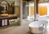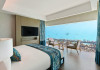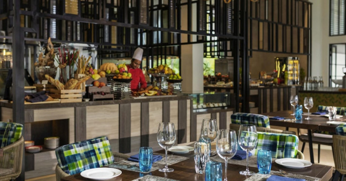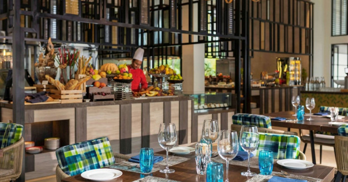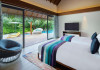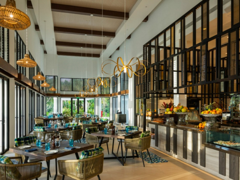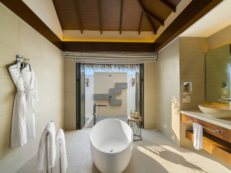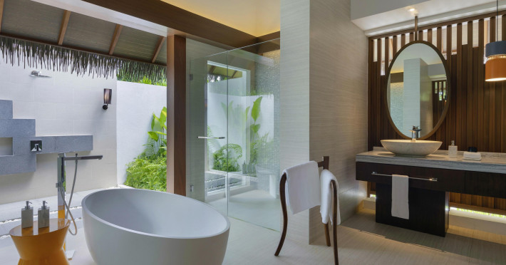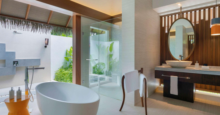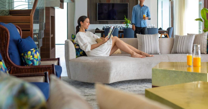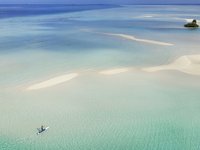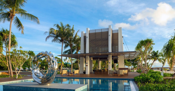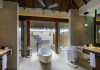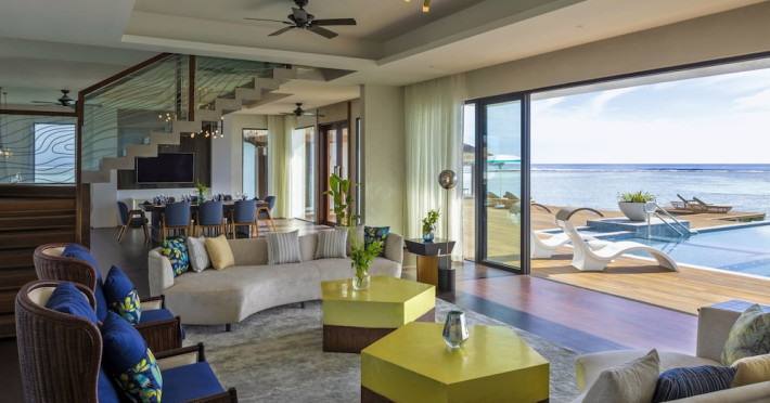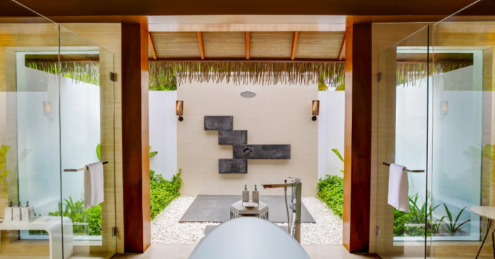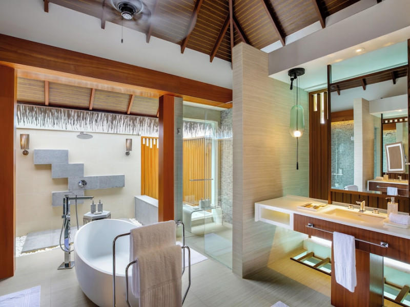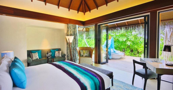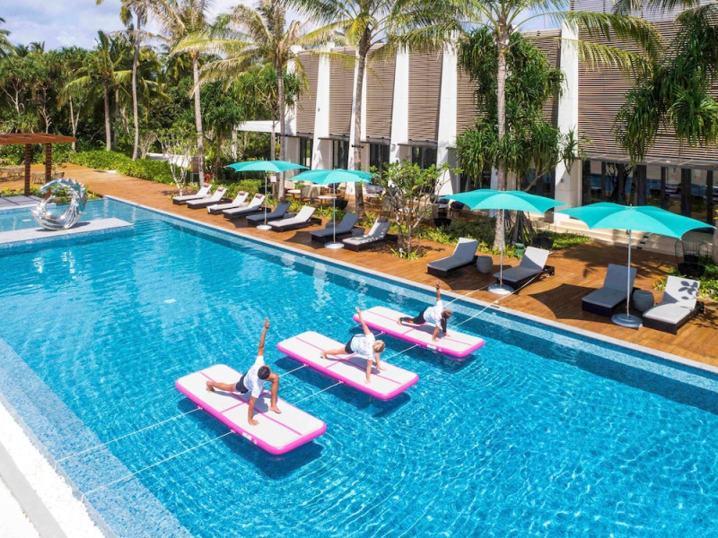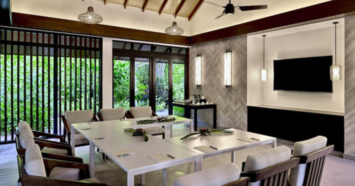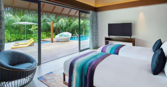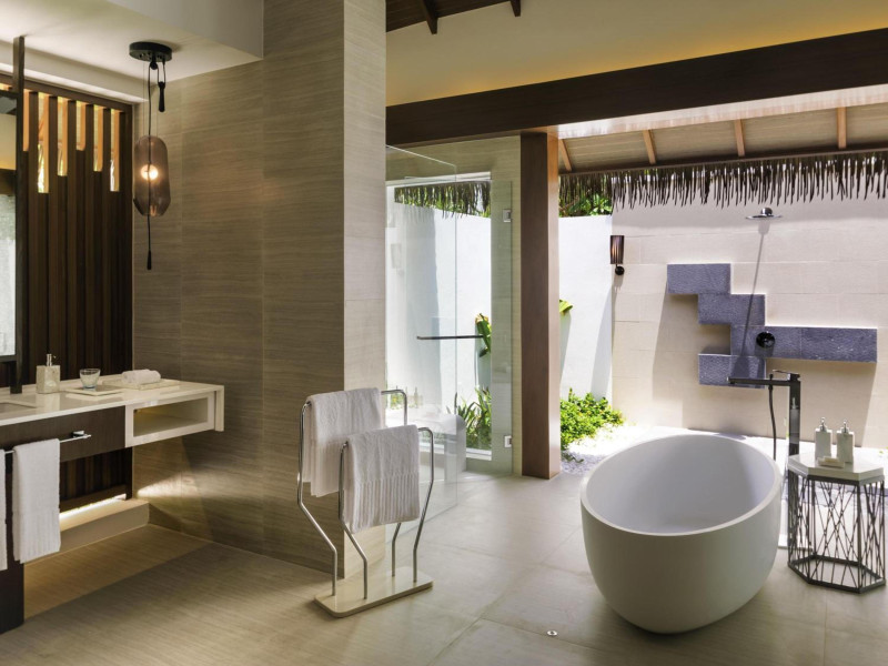 Escape to the Pullman Maldives Maamutaa, an all-inclusive five-star resort nestled on Maamutaa Island in the Gaafu Alifu atoll. This 18-hectare haven boasts 122 villas, each featuring a private furnished patio, indoor and outdoor showers, a 55-inch HD TV, Nespresso machine, USB port chargers, and a minibar replenished twice daily. Enjoy unlimited meals at three restaurants (including vegetarian options at Phat Chameleon and fine Italian dining at Souq Oven) and three bars, plus access to two poolside bars. The all-inclusive package also includes free non-motorized water activities. Amenities include three outdoor swimming pools, a private beach, a spa offering massages, body treatments, and facials, a fitness center, a business center, 24-hour room service, a 24-hour front desk, laundry facilities, complimentary Wi-Fi, and babysitting services (surcharge). The resort is near Hadahaa Beach and Kooddoo (GKK) airport. A range of activities are available, including diving, water sports, karaoke, golf, tennis, and beach volleyball. The Pullman Maldives Maamutaa is a hotel.