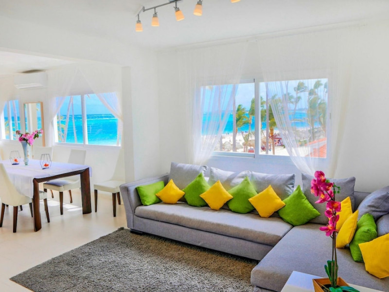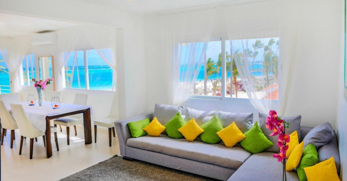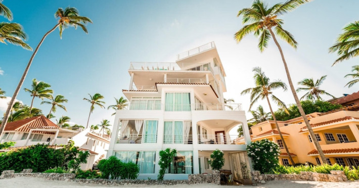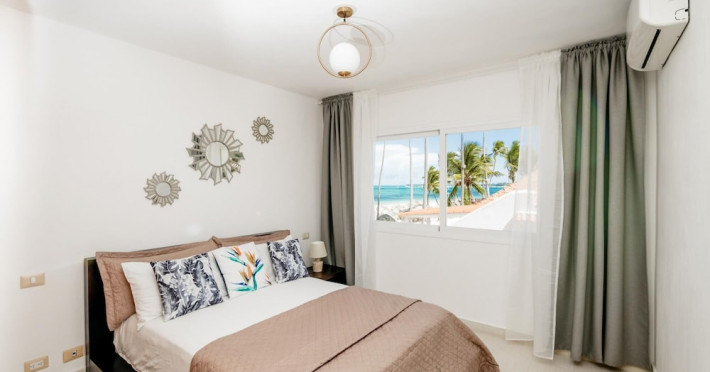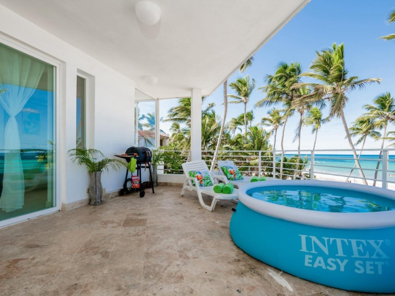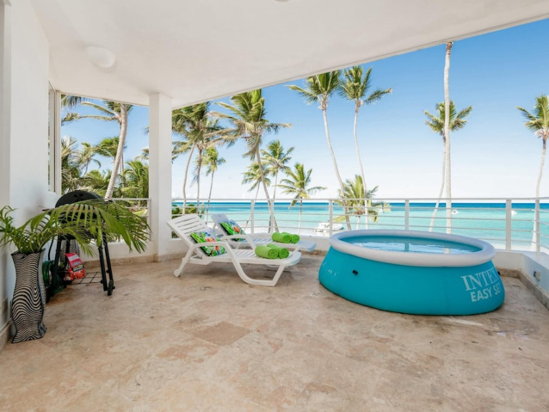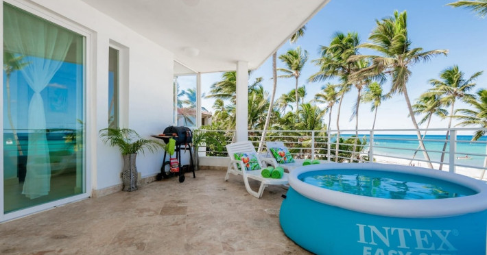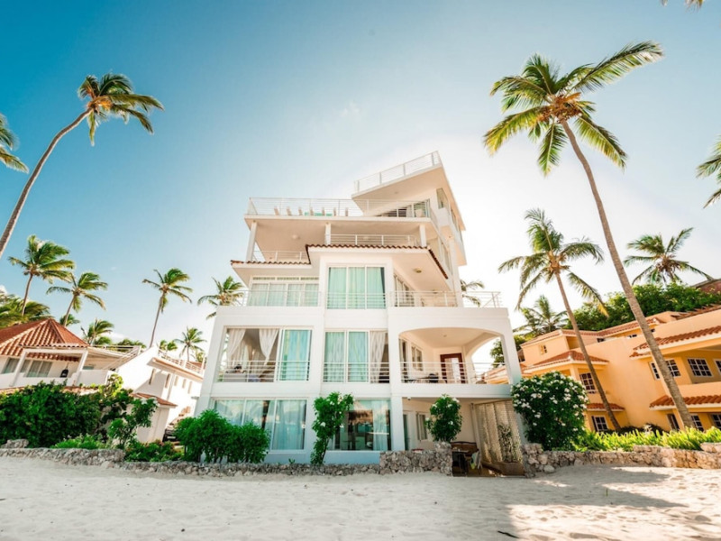 Hotel characteristics: ; 8 rooms Location: Looking for a place without the neighbors to worry about? Villa «Punta Cana Beachfront - Punta Cana Ocean View Paradise» is located in Bavaro. This villa is located minutes away from the city center. You can take a walk and explore the neighbourhood area of the villa â Palma Real Shopping Village, Cocotal Golf and Country Club and Cortecito Beach At the villa: Free Wi-Fi on the territory will help you to stay on-line. Specially for tourists who travel by car, thereâs a parking zone. You wonât be bored as at the villa you will find a barbeque area