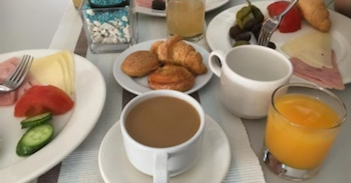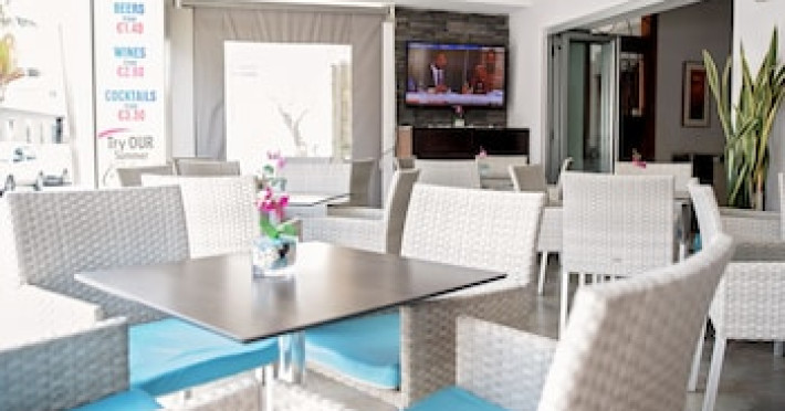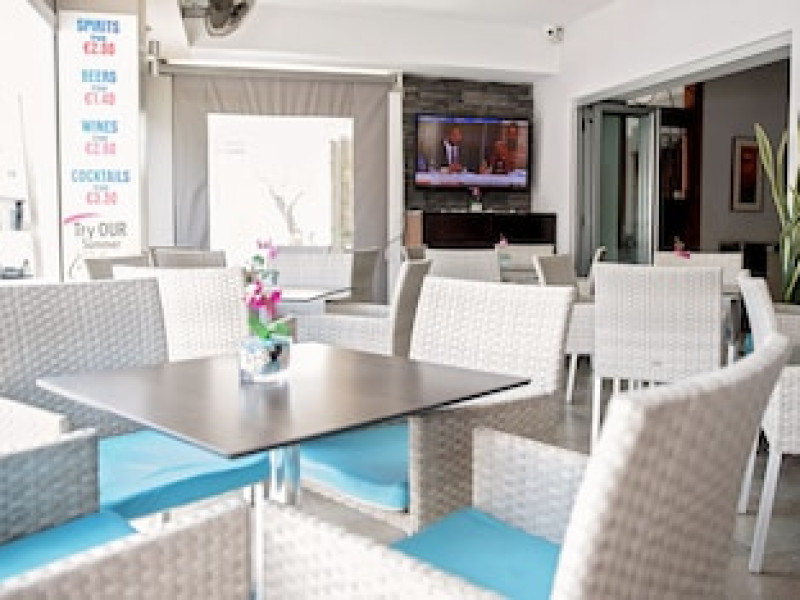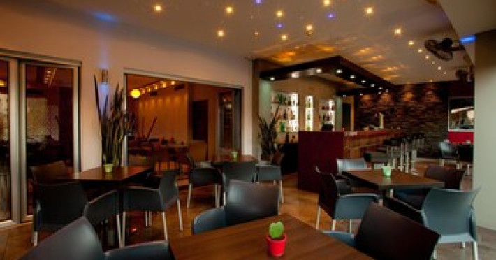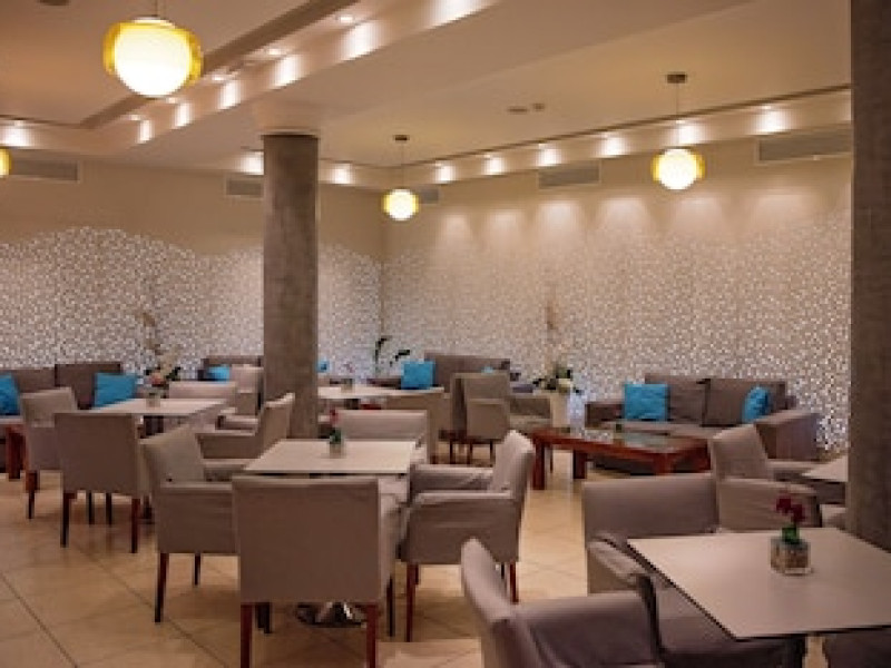 Restaurantul Pyramos servește micul dejun, iar proprietatea oferă room service. Cocktail-uri, vinuri și gustări sunt oferite la barul hotelului. Barul interior are mese de biliard și TV cu canale prin satelit cu programe sportive.