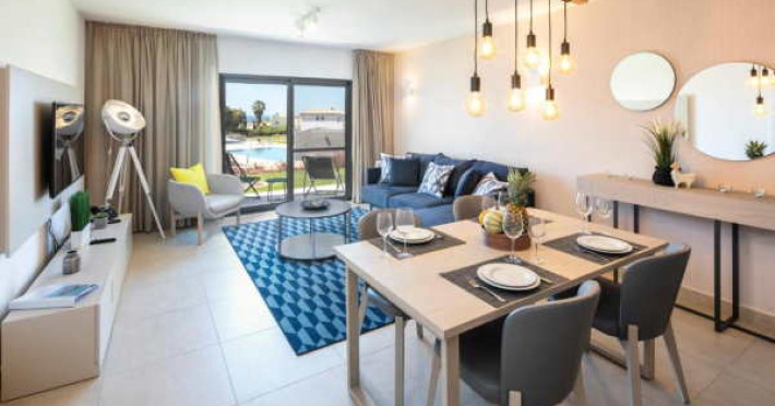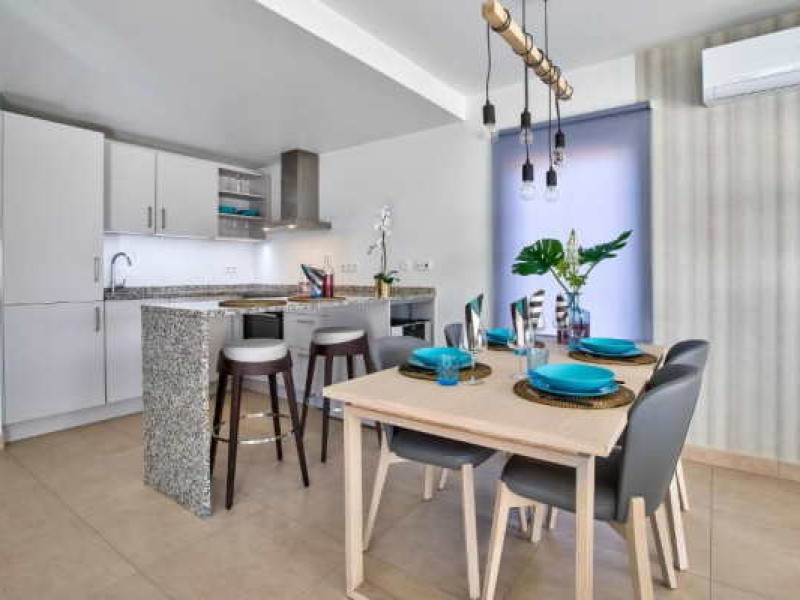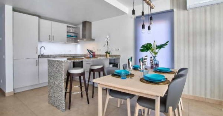 These immaculate 2-Bedroom Townhouses with a bright open living area on the ground floor, have been designed to the highest standard, benefiting from a cool and breezy beach-inspired look. The property is fully furnished and equipped. A separate guest toilet can be found on the ground floor as well as the washing machine and dryer in a separate compartment. On the first floor, the comfortable bedrooms have individual en-suite bathrooms (bathtub or shower). The properties are equipped with air conditioning as well as separate electric underfloor heating throughout, in order to create the perfect room climate and temperature.