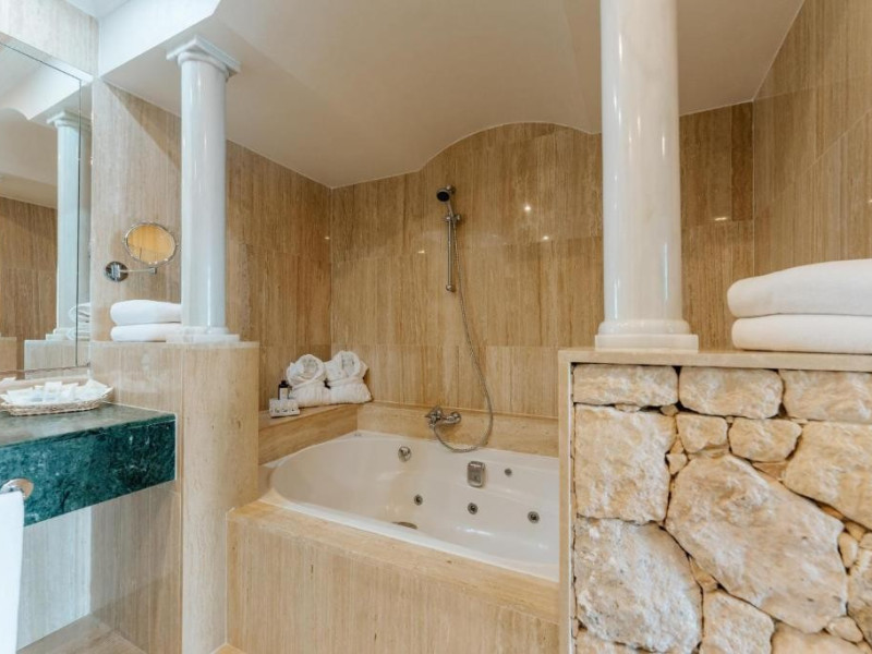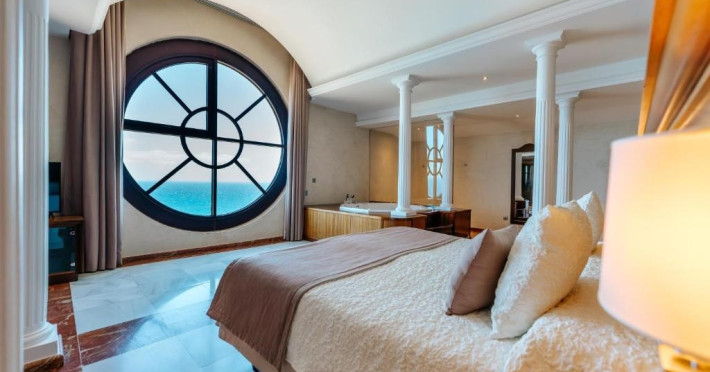 Camera de familie - 54,70 m2: Acest tip este o conexiune intre doua camere standard, toate dotarile sunt dublate, inclusiv balcoanele, care majoritatea au vedere la mare. Suita - 43,45 m2: Dotarile sunt aceleasi ca in camera standard, dormitorul este separat de living printr-o usa.