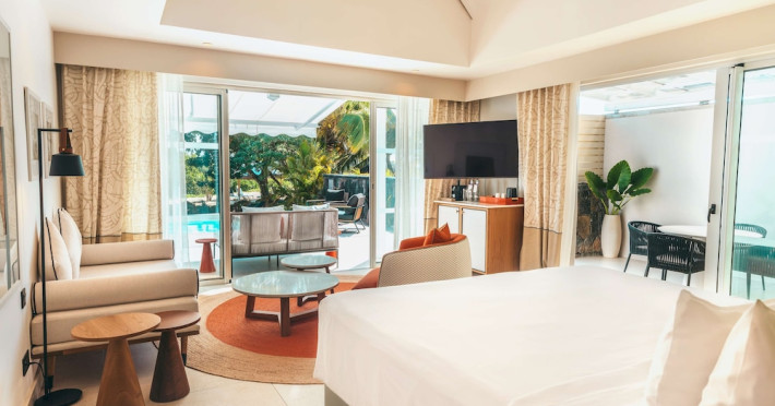 Located in Roches Noires, directly on the beach of Rivière du Rempart, Radisson Blu Azuri Resort & Spa offers access to Bras d'Eau National Park and Poste La Fayette Beach. This resort features 2 outdoor swimming pools, a health club, an outdoor tennis court, and a full-service spa offering massages, body treatments, and facials. Dining options include 3 restaurants, a coffee shop/cafe, and multiple bars, with 24-hour room service available. A complimentary continental breakfast is served daily. Guests can enjoy international cuisine at Le Comptoir. The air-conditioned rooms feature iPod docking stations, minibars, 43-inch Smart televisions with satellite programming, and private bathrooms with separate bathtubs and showers, deep soaking bathtubs, and complimentary toiletries. Conveniences include phones, safes, and desks. Complimentary wired and wireless internet access, concierge services, a computer station, and express check-in are available. Babysitting services are offered for a surcharge. A roundtrip airport shuttle is available 24 hours for a surcharge, and free self-parking is provided onsite. All-inclusive rates are available. The Radisson Blu Azuri Resort and Spa is a Beach Resort, Child Friendly, Honeymoon, Modern, Tourist hotel. The nightlife/restaurants are easily accessible by taxi or bus from the hotel.