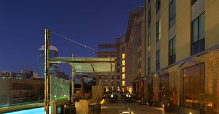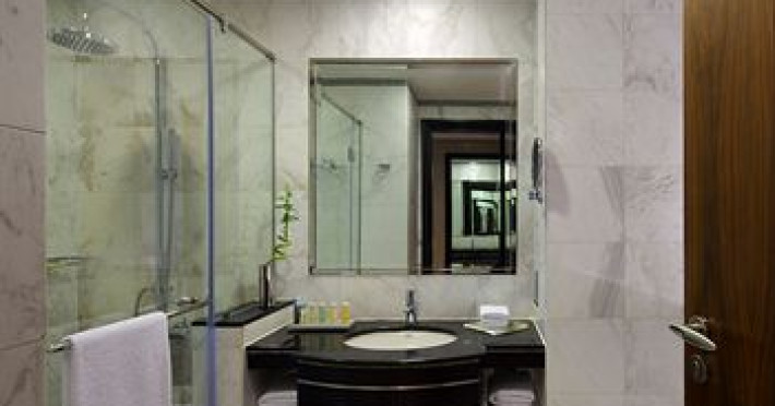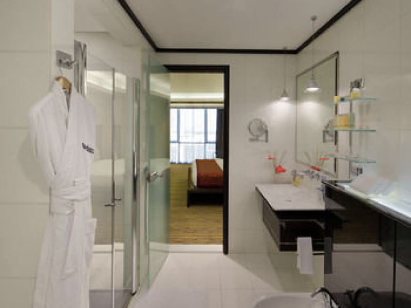 In Dubai (Al Sufouh 2). With a stay at Radisson Blu Hotel, Dubai Media City in Dubai (Al Sufouh 2), youll be within a 5-minute drive of Marina Beach and Dubai Marina Mall. This 4-star hotel is 4 mi (6.4 km) from Mall of the Emirates and 11.2 mi (18 km) from Burj Khalifa. Make yourself at home in one of the 246 individually decorated guestrooms, featuring minibars and DVD players. Wired and wireless Internet access is complimentary, and LCD televisions with cable programming provide entertainment. Private bathrooms with bathtubs or showers feature complimentary toiletries and bidets. Conveniences include phones, as well as laptop-compatible safes and desks. Grab a bite at Icon Lounge, one of the hotels 2 restaurants, or stay in and take advantage of the 24-hour room service. Snacks are also available at the 2 coffee shops/cafes. Relax with a refreshing drink from the poolside bar or one of the 2 bars/lounges. Buffet breakfasts are available daily from 6:30 AM to 10:30 AM for a fee. Pamper yourself with a visit to the spa, which offers massages, body treatments, and facials. Youre sure to appreciate the recreational amenities, which include 2 outdoor swimming pools and a health club. Additional features at this Art Deco hotel include complimentary wireless Internet access, concierge services, and a hair salon. If youd like to spend the day shopping, you can hop on the complimentary shuttle.