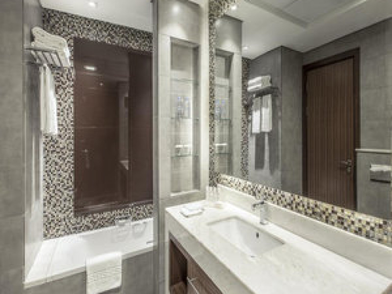 Near KidZania. In the heart of Dubai, Radisson Blu Hotel Dubai Waterfront is within a 5-minute drive of Burj Khalifa and Dubai Mall. This 5-star hotel is 6.4 mi (10.4 km) from BurJuman Mall and 7.7 mi (12.4 km) from City Centre Deira. Make yourself at home in one of the 432 air-conditioned rooms featuring minibars and flat-screen televisions. Your pillowtop bed comes with premium bedding. Complimentary wireless Internet access keeps you connected, and satellite programming is available for your entertainment. Private bathrooms with shower/tub combinations feature complimentary toiletries and bathrobes. Enjoy international cuisine at Larder, one of the hotels 2 restaurants, or stay in and take advantage of the 24-hour room service. Snacks are also available at the coffee shop/cafe. Relax with a refreshing drink from the poolside bar or one of the 2 bars/lounges. Buffet breakfasts are served on weekdays from 6:30 AM to 10:30 AM and on weekends from 6:30 AM to 11 AM for a fee. Pamper yourself with a visit to the spa, which offers massages, body treatments, and facials. You can take advantage of recreational amenities such as a nightclub, a health club, and an outdoor pool. Additional features at this hotel include complimentary wireless Internet access, concierge services, and babysitting (surcharge). Getting to the surf and sand is a breeze with the complimentary beach shuttle.