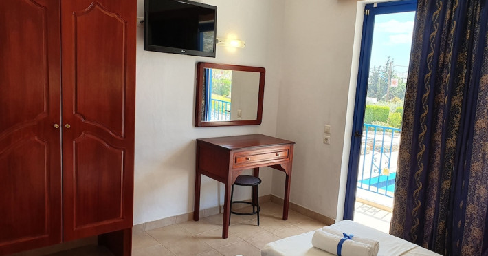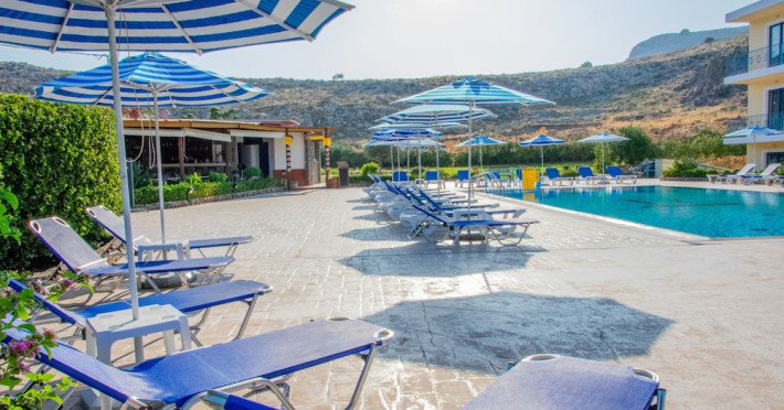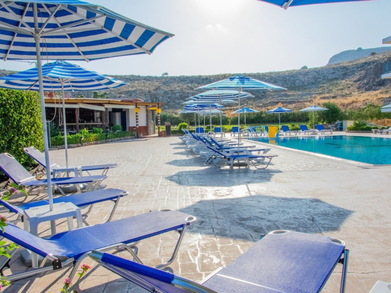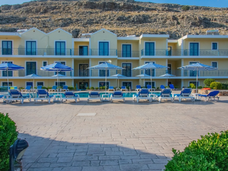 Rafael Hotel is located just outside Lindos village close to Krana Square. A short walk from Rafael Hotel will take you straight into the heart of Lindos, a traditional village, with narrow cobbled streets, Captain’s Houses, traditional white washed buildings, fascinating architecture, all built in the shadow of the towering Acropolis of Lindos perched on a 150m high triangular shaped rock above.All of our studios are self-catering with a balcony with views of Lindos Village, the Acropolis and the pool area. All studios have their own large separate bathrooms with shower and toilet facilities, kitchenette with cooking facilities, fridge, freezer and kettle. Linen and towels are all provided. Plus private balcony with exterior table and chairs.**Air-conditioning and safety deposit box are available at a local charge.**When booking with breakfast, please note it is continental style.Address: Lindos, 85107, Rhodes, Greece