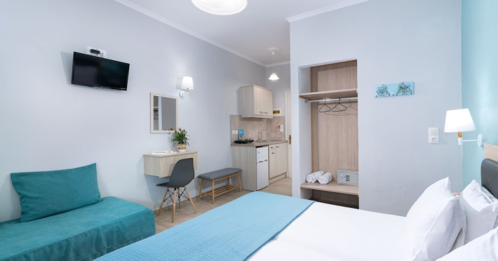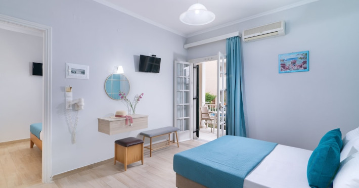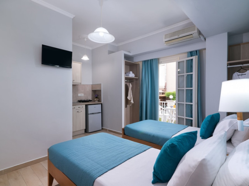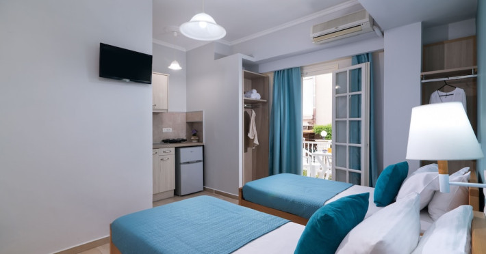 With a stay at Ragias Studios in Zakynthos, you'll be convenient to Tsilivi Beach and Gaidaros Beach. This aparthotel is within close proximity of Amboula Beach and Dermatousa Monastery. Make yourself at home in one of the 20 air-conditioned rooms featuring kitchenettes with refrigerators and stovetops. Rooms have private balconies or patios. LED televisions with satellite programming provide entertainment, while complimentary wireless Internet access keeps you connected. Conveniences include desks, housekeeping is provided daily, and cribs/infant beds (complimentary) can be requested. Take in the views from a terrace and a garden. The front desk is staffed during limited hours. Free self parking is available onsite.