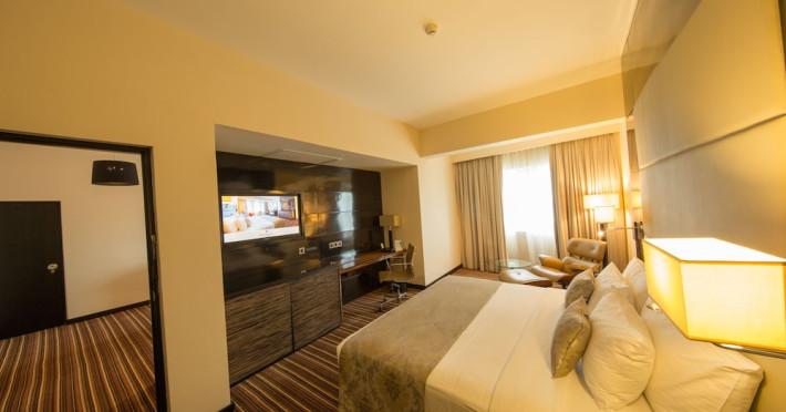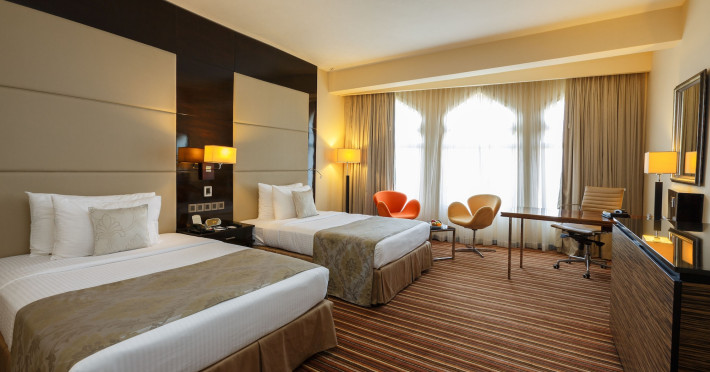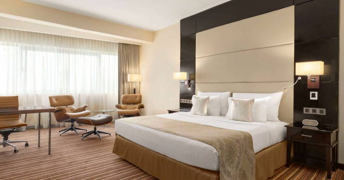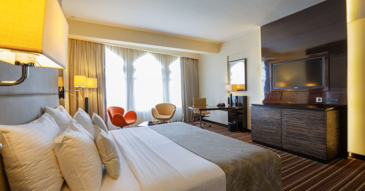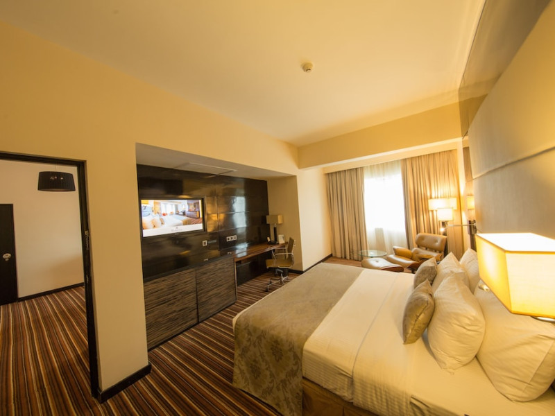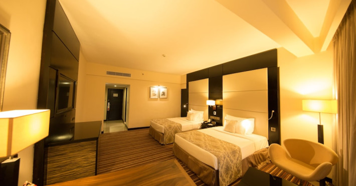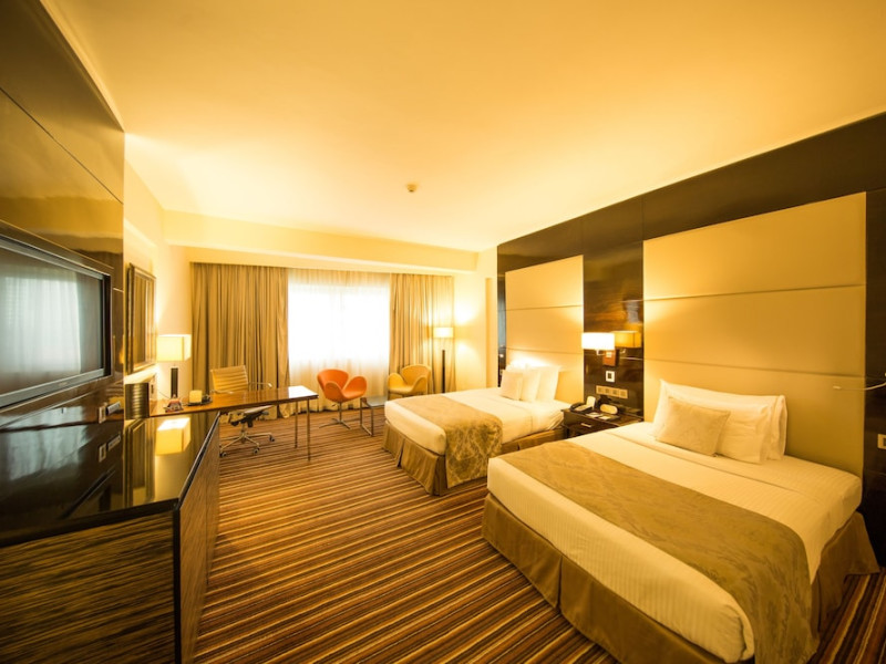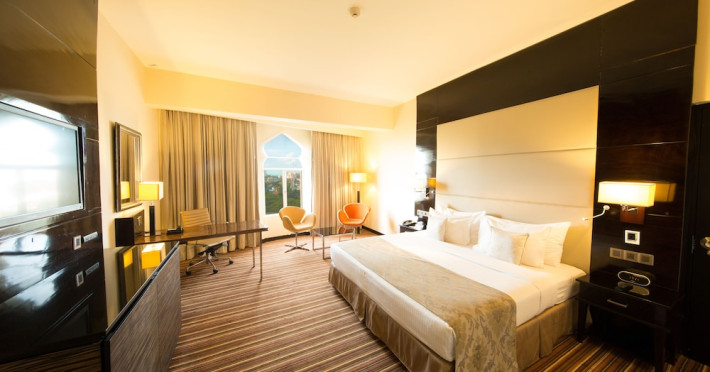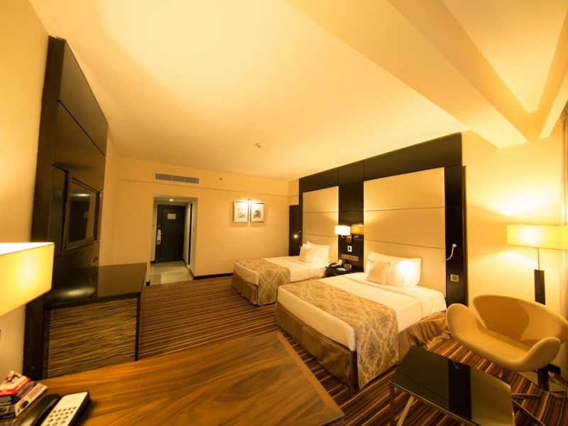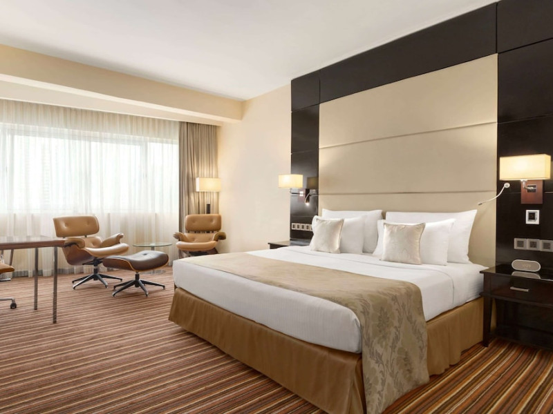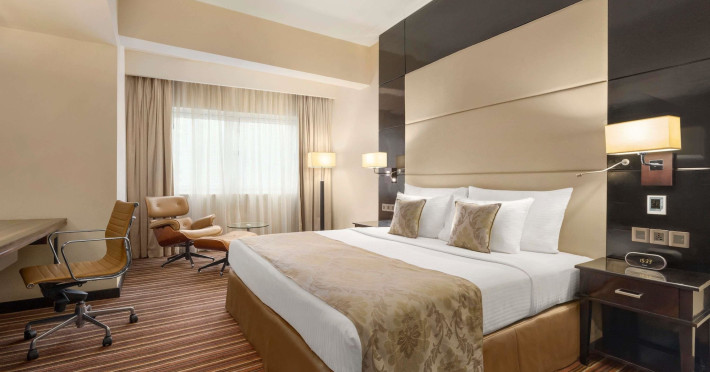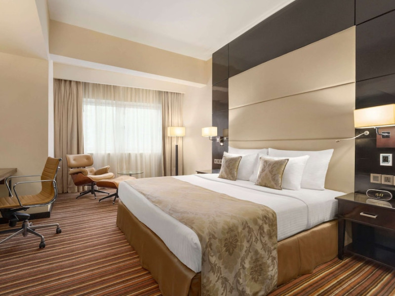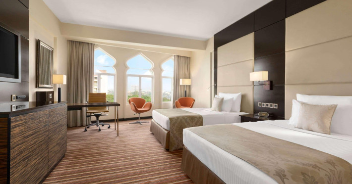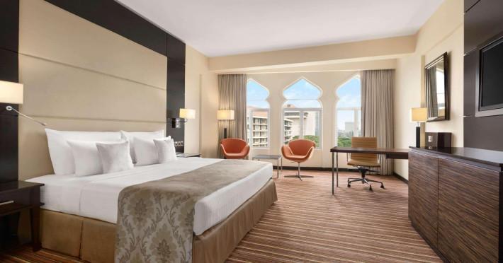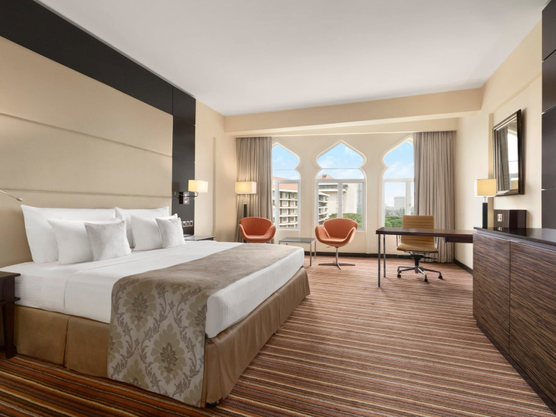 Located in central Colombo, approximately half a mile from the commercial center and 22 miles from Bandaranaike International Airport, the Ramada by Wyndham Colombo offers 94 air-conditioned rooms. Each room includes complimentary tea and coffee making facilities, in-house movies, a safety deposit box, a refrigerator, a minibar, and a private bathroom with a rainfall showerhead and complimentary toiletries. Guests can enjoy multiple dining options, including a specialty Moghul restaurant, a 24-hour coffee shop serving Oriental, Indian, Sri Lankan, and Western cuisine, and 24-hour room service. The hotel features a health club, an outdoor pool, a hot tub, a spa offering facials, a bar/lounge, and a poolside bar. Complimentary wired and wireless internet access is available. Amenities include concierge services, a business center, and conference space with meeting rooms. Airport shuttle service and valet parking are available for a surcharge. The hotel is within walking distance of Galle Face Green and close to shopping malls. The Ramada by Wyndham Colombo is a Tourist hotel. The nightlife/restaurants are located in the hotel.