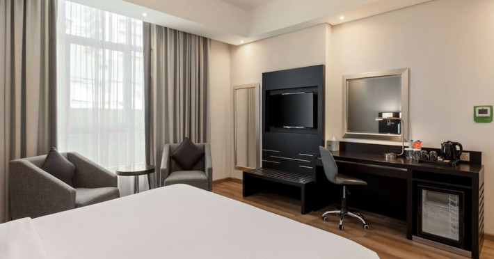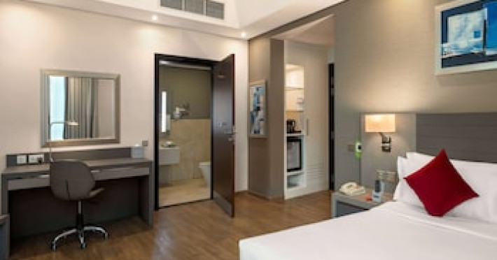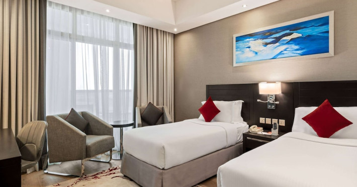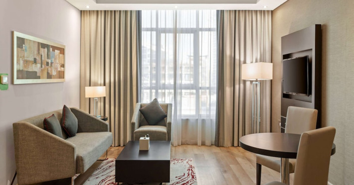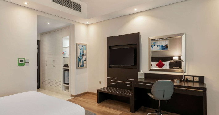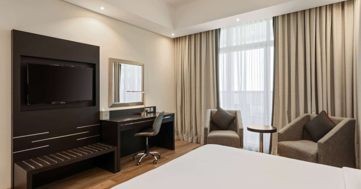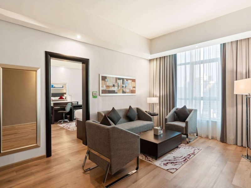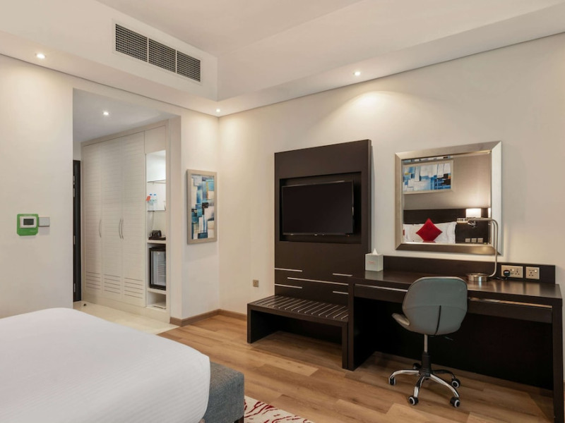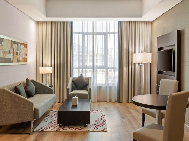 Pamper yourself with a visit to the spa, which offers massages, body treatments, and facials. Youapos;re sure to appreciate the recreational amenities, which include 2 outdoor swimming pools, a health club, and a steam room. This hotel also features complimentary wireless internet access, concierge services, and gift shops/newsstands. Getting to the surf and sand is a breeze with the beach shuttle (surcharge).lt;stronggt;Property Locationlt;/stronggt;lt;pgt;With a stay at Ramada by Wyndham Dubai Barsha Heights in Dubai (Barsha Heights), youapos;ll be within a 10-minute drive of Mall of the Emirates and Dubai Marina Mall. This spa hotel is 4.3 mi (7 km) from Marina Beach and 5.1 mi (8.1 km) from Burj Al Arab.lt;brgt; Distances are displayed to the nearest 0.1 mile and kilometer. lt;br /gt; lt;pgt;Jebel Ali Race Course - 1 km / 0.6 mi lt;br /gt; Emirates Golf Club - 2.9 km / 1.8 mi lt;br /gt; Dubai College - 3.2 km / 2 mi lt;br /gt; Fatima Abdullah Mohammed Rasheed Mosque - 3.6 km / 2.2 mi lt;br /gt; Al Barsha Pond Park - 3.6 km / 2.3 mi lt;br /gt; Al Sufouh Beach - 4.3 km / 2.7 mi lt;br /gt; Ski Dubai - 4.5 km / 2.8 mi lt;br /gt; Mall of the Emirates - 4.5 km / 2.8 mi lt;br /gt; Palm Islands - 6.3 km / 3.9 mi lt;br /gt; Dubai Police Museum - 6.4 km / 4 mi lt;br /gt; Dubai Marina Mall - 6.7 km / 4.2 mi lt;br /gt; Skydive Dubai - 6.9 km / 4.3 mi lt;br /gt; The Walk - 6.9 km / 4.3 mi lt;br /gt; Nakheel Mall - 6.9 km / 4.3 mi lt;br /gt; Marina Beach - 7 km / 4.3 mi lt;br /gt; lt;/pgt;lt;pgt;The nearest airports are:lt;br /gt;Al Maktoum Intl. Airport (DWC) - 37.8 km / 23.5 milt;br /gt; Dubai Intl. Airport (DXB) - 28.6 km / 17.8 milt;br /gt; Sharjah (SHJ-Sharjah Intl.) - 59 km / 36.7 milt;br /gt; lt;/pgt;lt;pgt;The preferred airport for Ramada by Wyndham Dubai Barsha Heights is Dubai Intl. Airport (DXB). lt;/pgt;lt;brgt; lt;stronggt;Roomslt;/stronggt;lt;pgt;Make yourself at home in one of the 145 air-conditioned rooms featuring minibars and LED televisions. Complimentary wireless internet access keeps you connected, and cable programming is available for your entertainment. Bathrooms feature bathtubs or showers, complimentary toiletries, and hair dryers. Conveniences include phones, as well as laptop-compatible safes and desks.lt;pgt; lt;stronggt;Dininglt;/stronggt;lt;pgt;Enjoy Japanese cuisine at UCCI Restaurant, one of the hotelapos;s 3 restaurants, or stay in and take advantage of the 24-hour room service. Snacks are also available at the coffee shop/cafe. Buffet breakfasts are available daily from 6:30 AM to 10:30 AM for a fee.lt;pgt; lt;stronggt;Business, Other Amenitieslt;/stronggt; lt;pgt;Featured amenities include a 24-hour business center, complimentary newspapers in the lobby, and dry cleaning/laundry services. Event facilities at this hotel consist of a conference center and 2 meeting rooms. A roundtrip airport shuttle is provided for a surcharge (available 24 hours), and free self parking is available onsite.lt;pgt;