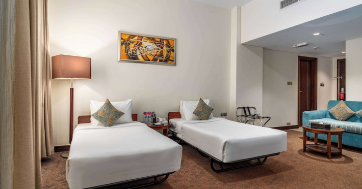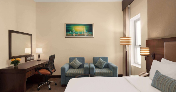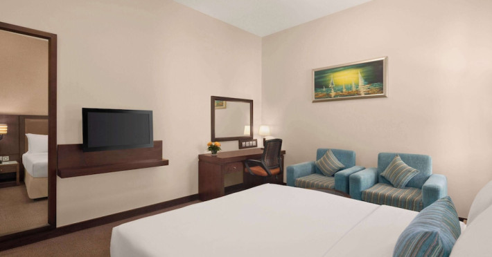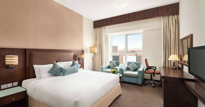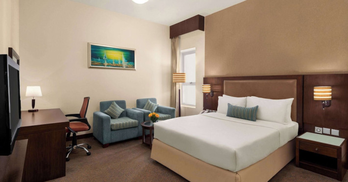 Pamper yourself with a visit to the spa, which offers massages and body treatments. You can take advantage of recreational amenities such as a health club, an outdoor pool, and a sauna. This hotel also features complimentary wireless internet access, concierge services, and a hair salon.lt;stronggt;Property Locationlt;/stronggt;lt;pgt;With a stay at Ramada by Wyndham Dubai Deira in Dubai (Deira), youapos;ll be a 5-minute walk from Al Ghurair Centre and within a 5-minute drive of Gold Souk. This spa hotel is 3.5 mi (5.7 km) from Dubai Creek and 5.1 mi (8.3 km) from Dubai Cruise Terminal.lt;brgt; Distances are displayed to the nearest 0.1 mile and kilometer. lt;br /gt; lt;pgt;Al Ghurair Centre - 0.4 km / 0.2 mi lt;br /gt; Fish Roundabout - 0.6 km / 0.4 mi lt;br /gt; Deira Twin Towers Shopping Centre - 1.9 km / 1.2 mi lt;br /gt; Deira Clocktower - 2 km / 1.3 mi lt;br /gt; Naif Souq - 2.1 km / 1.3 mi lt;br /gt; Gold Souk - 2.8 km / 1.7 mi lt;br /gt; Spice Souk - 2.9 km / 1.8 mi lt;br /gt; Deira Spice Souq - 3 km / 1.8 mi lt;br /gt; City Centre Deira - 3.1 km / 1.9 mi lt;br /gt; Dubai Creek - 3.2 km / 2 mi lt;br /gt; Hindi Lane - 3.9 km / 2.4 mi lt;br /gt; Grand Mosque - 4 km / 2.5 mi lt;br /gt; Sheikh Saeed Al Maktoum House - 4 km / 2.5 mi lt;br /gt; Dubai Museum - 4.1 km / 2.6 mi lt;br /gt; Textile Souk - 4.2 km / 2.6 mi lt;br /gt; lt;/pgt;lt;pgt;The nearest airports are:lt;br /gt;Dubai Intl. Airport (DXB) - 6.4 km / 4 milt;br /gt; Sharjah (SHJ-Sharjah Intl.) - 28.1 km / 17.5 milt;br /gt; Al Maktoum Intl. Airport (DWC) - 67.8 km / 42.1 milt;br /gt; lt;/pgt;lt;pgt;The preferred airport for Ramada by Wyndham Dubai Deira is Dubai Intl. Airport (DXB). lt;/pgt;lt;brgt; lt;stronggt;Roomslt;/stronggt;lt;pgt;Make yourself at home in one of the 173 air-conditioned rooms featuring minibars and flat-screen televisions. Complimentary wireless internet access keeps you connected, and satellite programming is available for your entertainment. Private bathrooms with shower/tub combinations feature rainfall showerheads and complimentary toiletries. Conveniences include phones, as well as safes and desks.lt;pgt; lt;stronggt;Dininglt;/stronggt;lt;pgt;For lunch or dinner, stop by TEJ, a restaurant that specializes in Indian cuisine. Dining is also available at the coffee shop/cafe, and 24-hour room service is provided. Mingle with other guests at the complimentary reception, held daily. Buffet breakfasts are served on weekdays from 6:30 AM to 10:00 AM for a fee.lt;pgt; lt;stronggt;Business, Other Amenitieslt;/stronggt; lt;pgt;Featured amenities include a 24-hour business center, express check-in, and express check-out. A roundtrip airport shuttle is provided for a surcharge (available 24 hours), and free self parking is available onsite.lt;pgt;