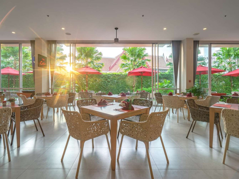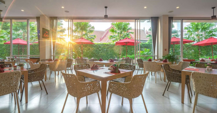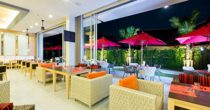 The Ramada by Wyndham Phuket Deevana boasts a fantastic location - steps away from the world-famous Patong Beach Shopping bazaars and Phukets bustling nightlife. Amenities include a Swimming pool with whirlpool Fitness Center Wellness Spa Kid s Club Pool side bar and a Lobby bar. Also there is all day dining a meeting room and Indoor parking free of charge.