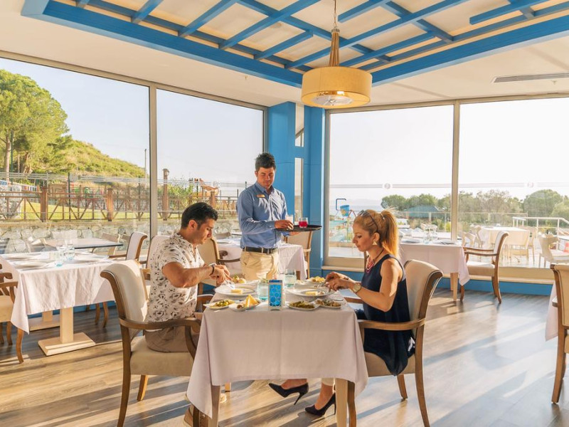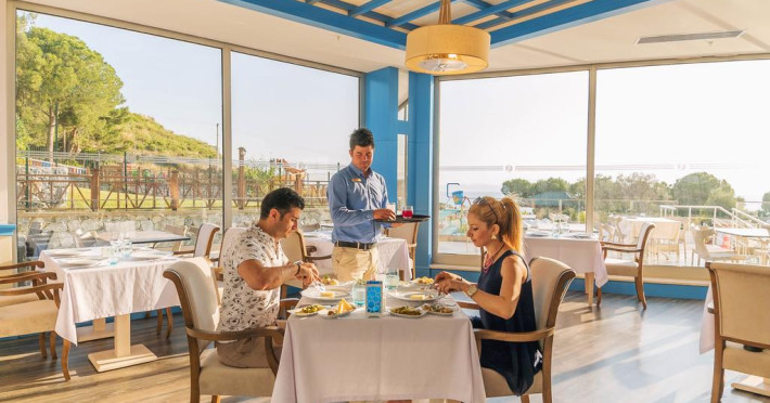 Complexul all inclusive Ramada Kusadasi & Golf are restaurante tip bufet și à la carte, numeroase baruri și un snack bar. Oaspeţii au la dispoziţie room service nonstop. În plus, aceştia se pot distra în clubul de noapte.