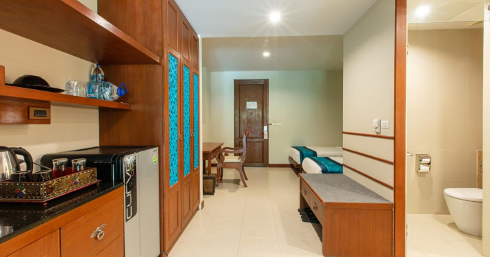 Located near Rawai Beach in Phuket, Rawai Palm Beach Resort offers accommodations with contemporary Thai décor. The resort features multiple swimming pools, a fitness center, and complimentary wireless internet access. Guests can enjoy on-site dining at two restaurants, with room service available during limited hours, and relax at the bar/lounge or poolside bar. The resort also offers a complimentary beach shuttle. The air-conditioned rooms feature private balconies, pillowtop beds, LCD televisions with cable programming, minibars, and bathrooms with hair dryers and slippers. The resort provides a 24-hour front desk, dry cleaning/laundry services, and tour/ticket assistance. Free self-parking is available. Phuket International Airport is approximately a 50-minute drive away. Smoking is restricted to designated areas. The Rawai Palm Beach Resort is a Resort hotel. Located in Beach - Rawai Beach area. The nightlife/restaurants are easily accessible by taxi or bus from the hotel.