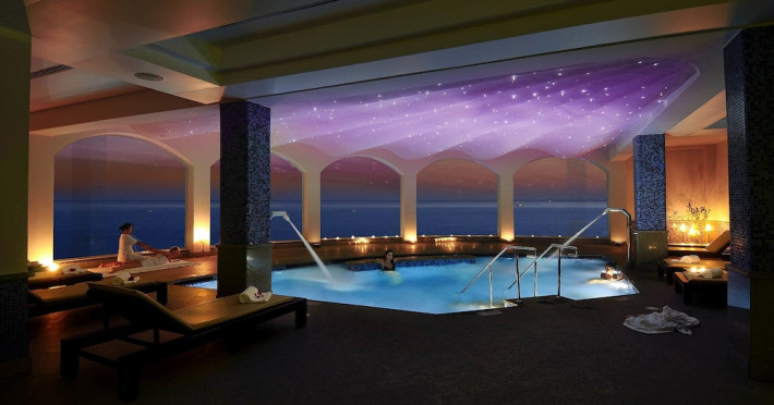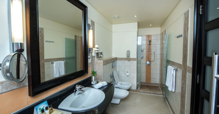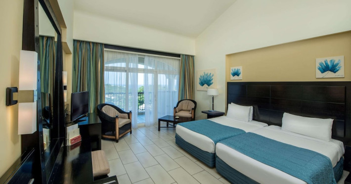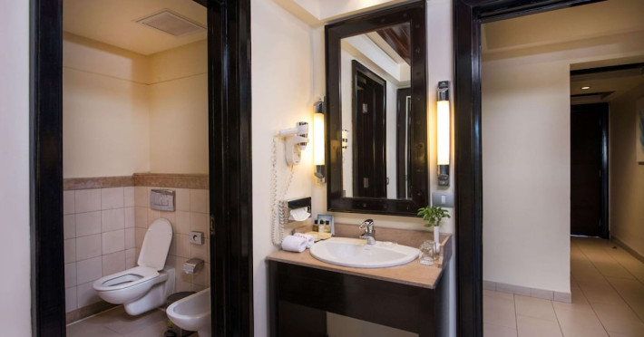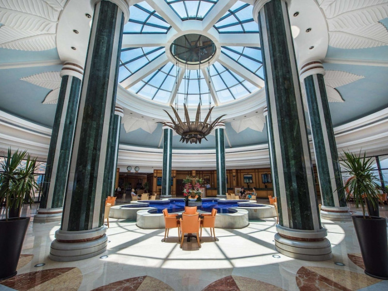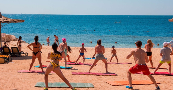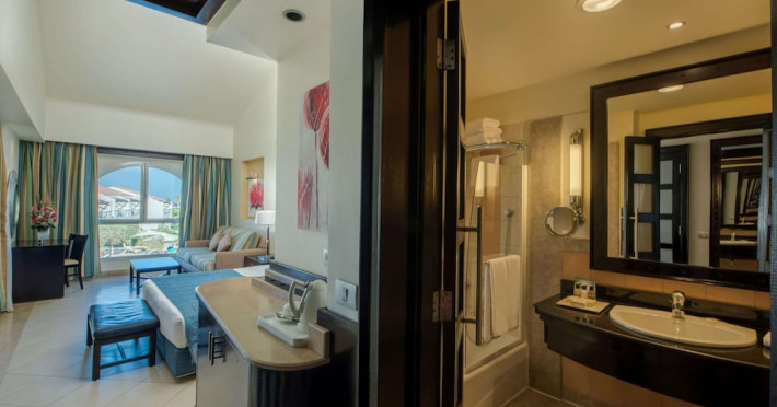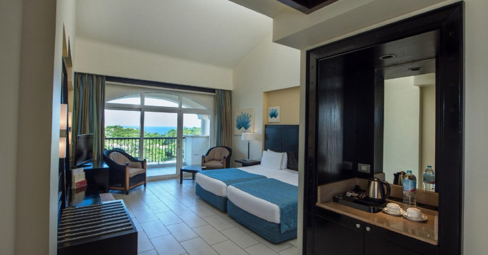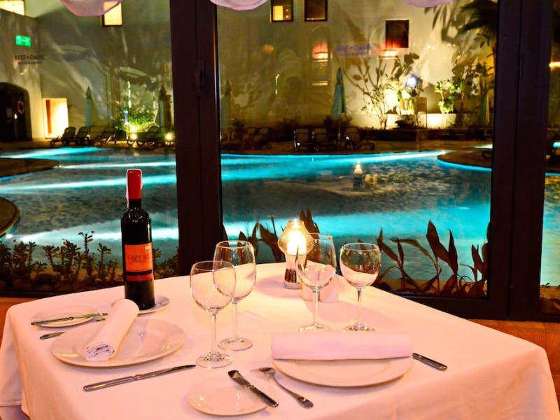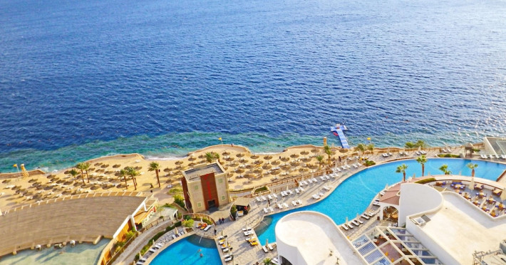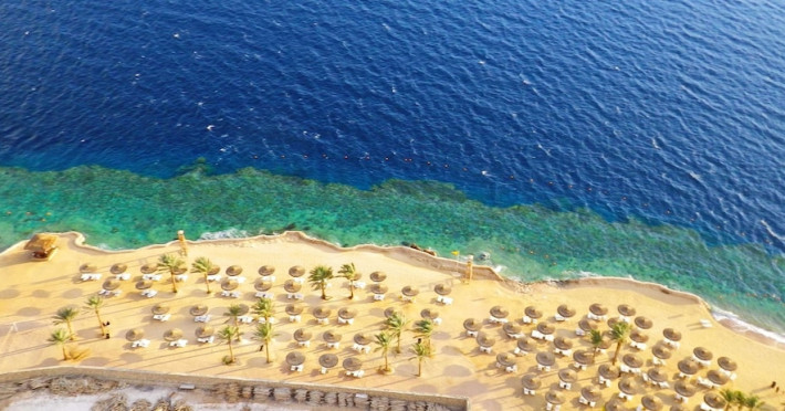 Located in Sharm El Sheikh's Naama Bay, Reef Oasis Blue Bay Resort offers 696 air-conditioned rooms featuring minibars, LCD TVs, and private balconies or patios. Bathrooms include bathtubs or showers and complimentary toiletries. Guests can enjoy multiple dining options, including restaurants, coffee shops/cafes, and bars/lounges. All-inclusive rates are available, with potential extra charges for select items. The resort boasts 5 outdoor swimming pools, a private beach area with Jacuzzis, and a full-service spa offering various treatments. Additional amenities include complimentary Wi-Fi in public areas, concierge services, barbecue grills, a nightclub, a sauna, a water park, and a gym. Services include a 24-hour front desk, luggage storage, dry cleaning/laundry services, and free self-parking. The hotel is located near Sinai Grand Casino, Naama Bay, the Red Sea, and other attractions. A complimentary buffet breakfast is served daily. A free shuttle service is available. The Reef Oasis Blue Bay Resort and Spa is a Tourist hotel. The nightlife/restaurants are easily accessible by taxi or bus from the hotel.