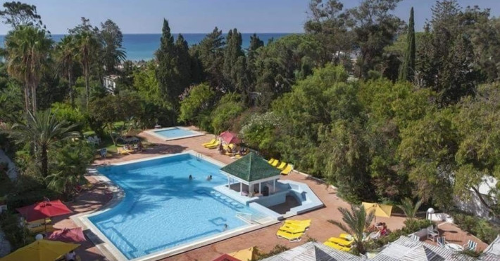 This first-class hotel has original architecture and is surrounded by marvellous gardens. This hotel is located along the beach on the Gulf of Hammamet, and around 6 km away from the Medina, the fortress, and the commercial centre of Hammamet. The capital Tunis is approximately 65 km away. Guests have a choice of comfortable and beautifully decorated guest rooms, all of which are equipped with a host of modern amenities.