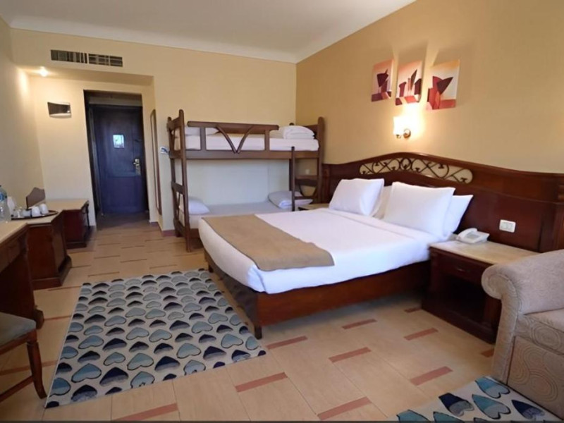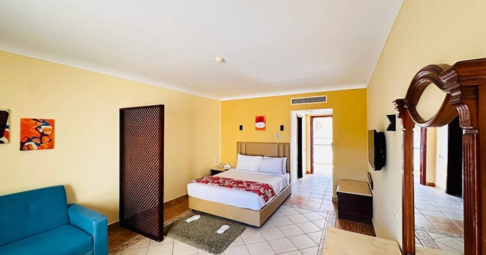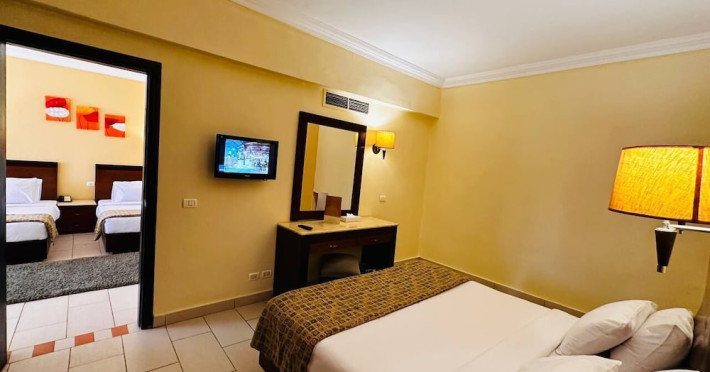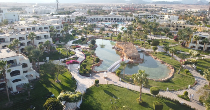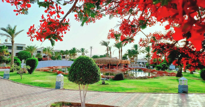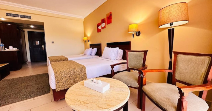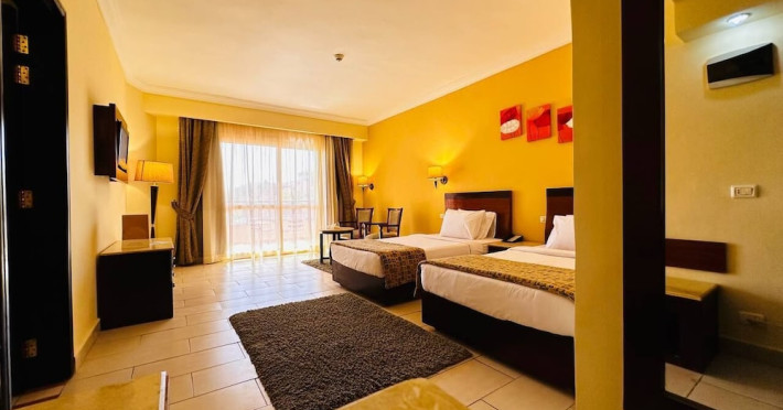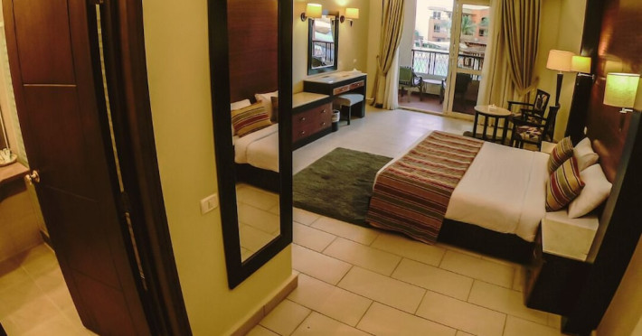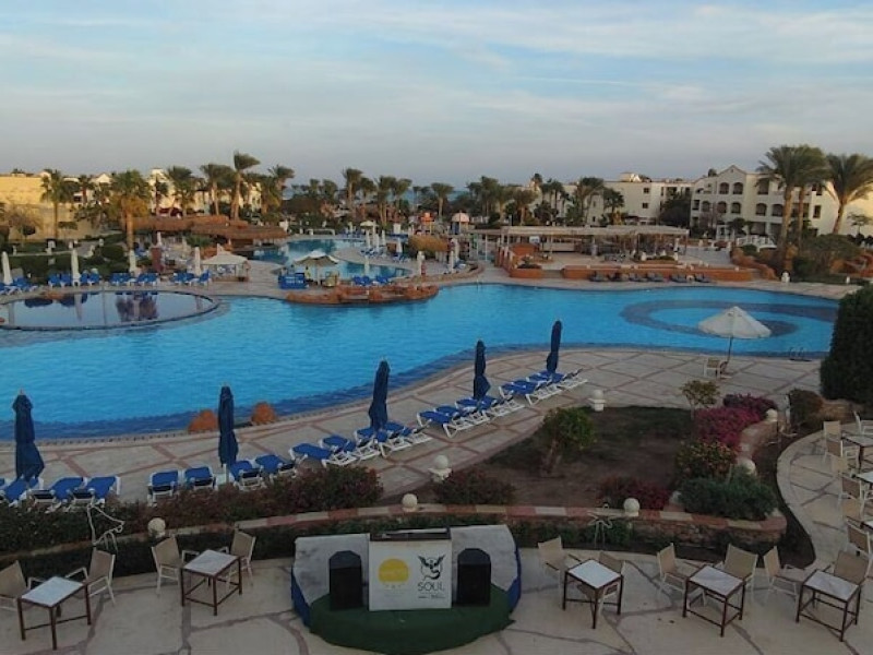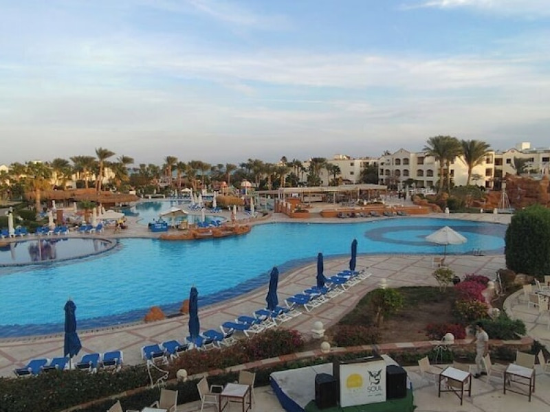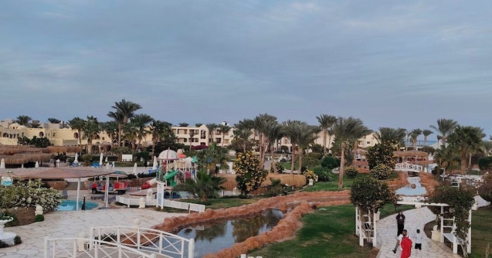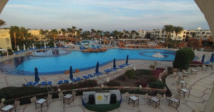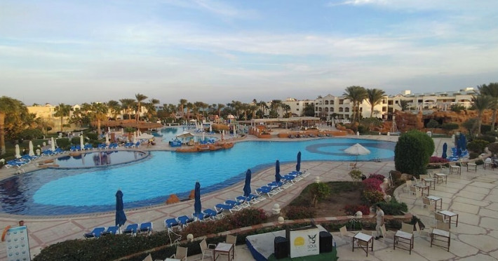 Located on the coral beach of Nabq Bay in the Sinai Peninsula, Regency Plaza Aqua Park & SPA is a 5-star resort offering access to vibrant reefs and turquoise waters. It features a private beach, 6 outdoor pools (including 2 for kids and 1 heated during winter), and a spa offering massages, body treatments, and facials. Guests can dine at 8 restaurants, including Floret Main Restaurant, with options ranging from buffet to a la carte, and enjoy drinks at the beach bar or one of the 6 bars/lounges. The resort also offers 24-hour room service, complimentary wireless internet access, a hair salon, and on-site shopping. All-inclusive rates are available. The air-conditioned rooms feature a balcony, satellite television, a safe, and a minibar. The resort is a 10-minute drive from Sharm El-Sheikh International Airport and 25 minutes from Naama Bay. Free self-parking is available. Water sports and safari boat cruises can be arranged at the hotel's diving center.