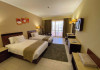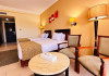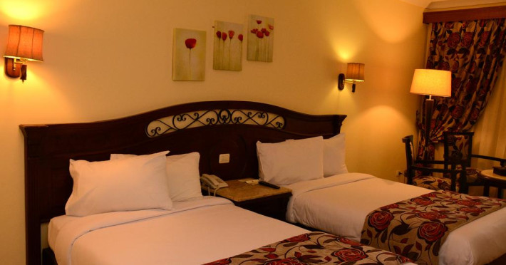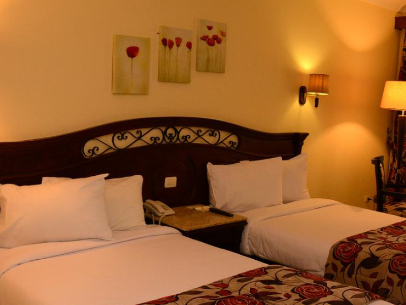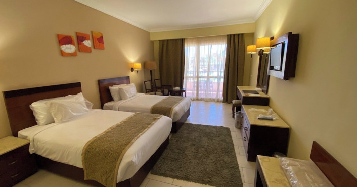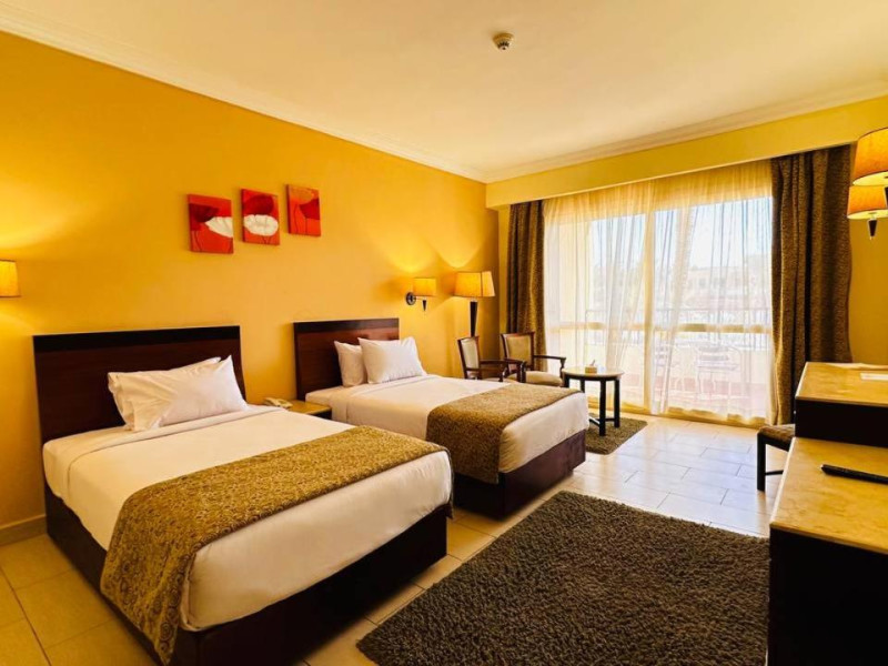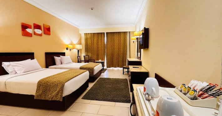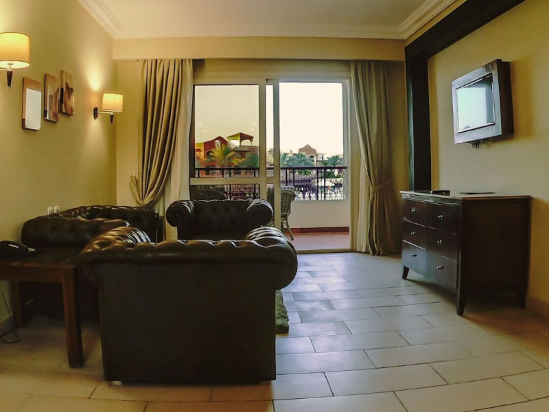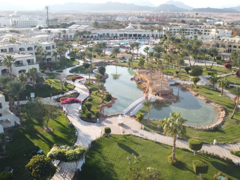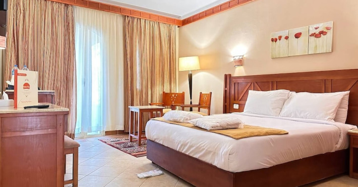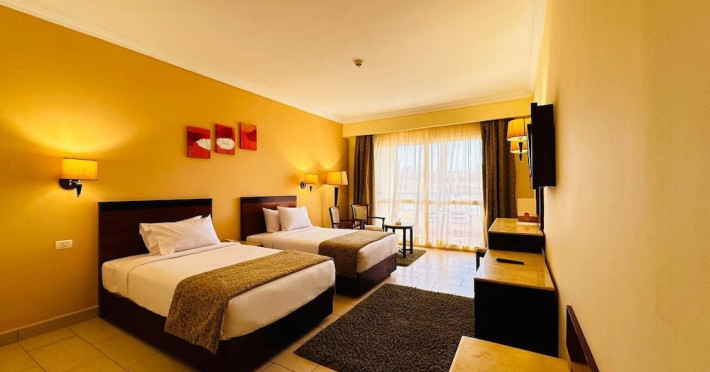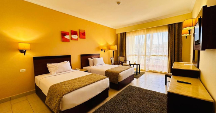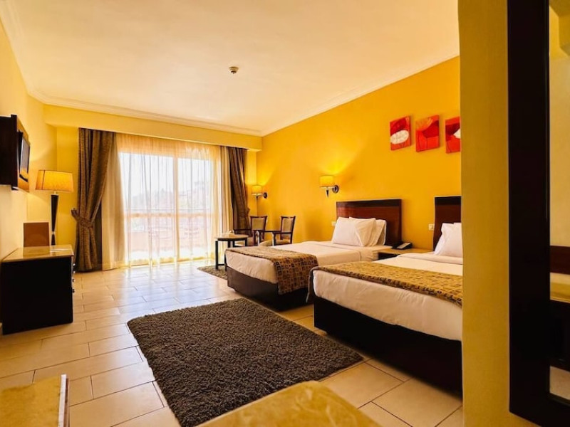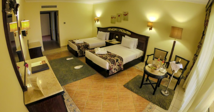 Located on the coral beach of Nabq Bay in the Sinai Peninsula, Regency Plaza Aqua Park & SPA is a 5-star resort offering access to vibrant reefs and turquoise waters. It features a private beach, 6 outdoor pools (including 2 for kids and 1 heated during winter), and a spa offering massages, body treatments, and facials. Guests can dine at 8 restaurants, including Floret Main Restaurant, with options ranging from buffet to a la carte, and enjoy drinks at the beach bar or one of the 6 bars/lounges. The resort also offers 24-hour room service, complimentary wireless internet access, a hair salon, and on-site shopping. All-inclusive rates are available. The air-conditioned rooms feature a balcony, satellite television, a safe, and a minibar. The resort is a 10-minute drive from Sharm El-Sheikh International Airport and 25 minutes from Naama Bay. Free self-parking is available. Water sports and safari boat cruises can be arranged at the hotel's diving center.