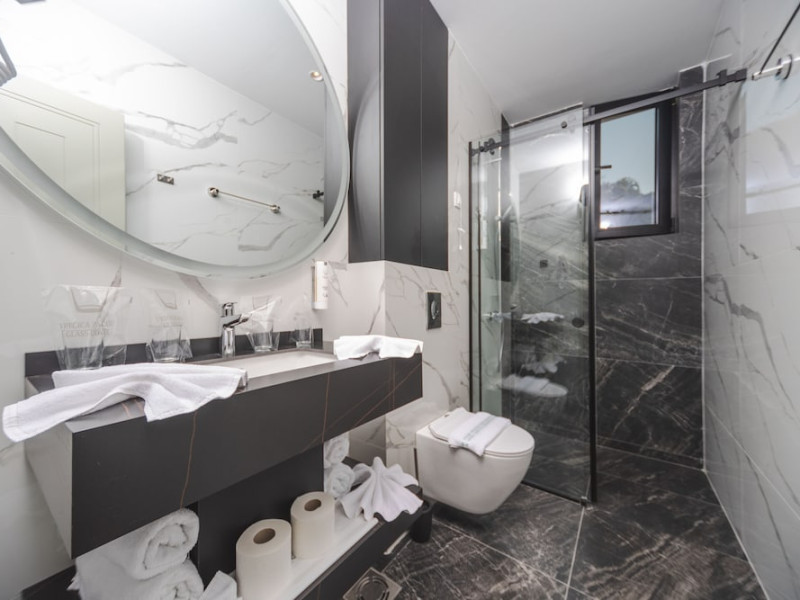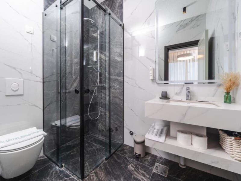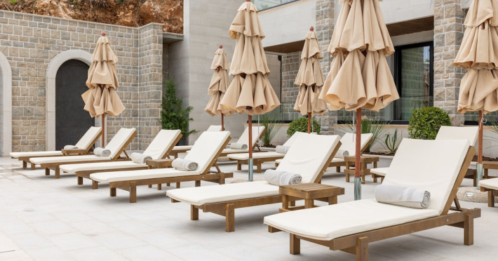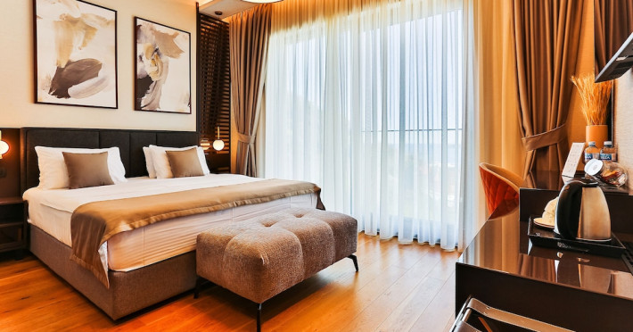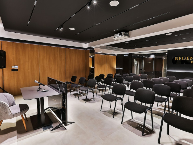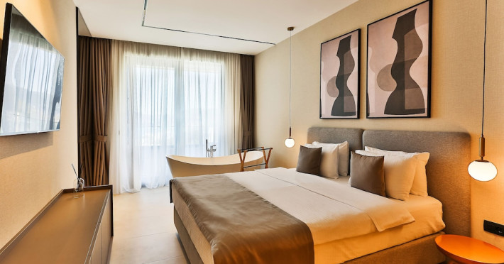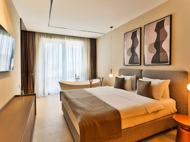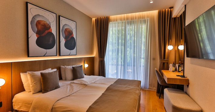 Discover Regent Resort Budva, a modern 4-star resort located in Miločer, near St. Stefan on the Montenegrin coast. Przno Beach is a short walk away. The resort offers a seasonal outdoor pool, complimentary wireless internet access, concierge services, a banquet hall, a restaurant, and a bar/lounge. Guests can enjoy 24-hour room service and a complimentary buffet breakfast daily from 7:00 AM to 10:00 AM. Featured amenities include dry cleaning/laundry services, a 24-hour front desk, and luggage storage. Self-parking is available onsite (subject to charges). The air-conditioned rooms feature kitchenettes, 49-inch Smart televisions with cable programming, complimentary wireless internet access, and safes. Housekeeping is provided daily.